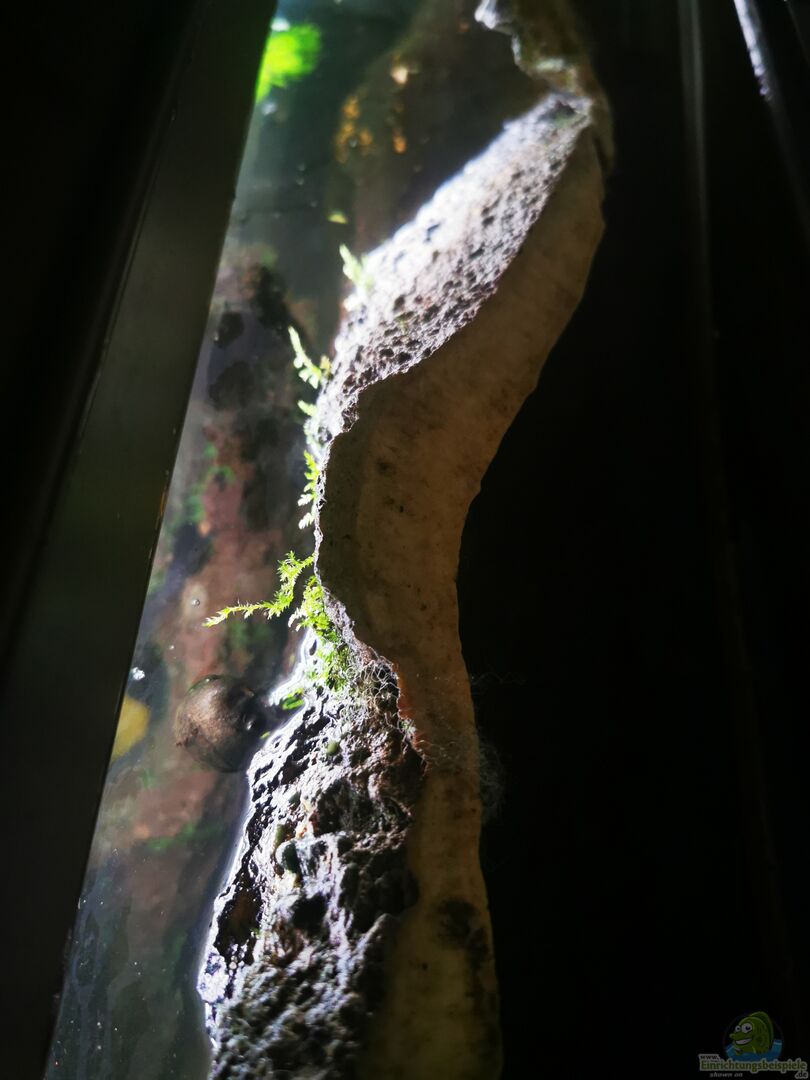Update 6.2.2022: das 10 Jahre alte Javamoos auf der Rückwand, das ohne Wasser eingetrocknet als Reste verblieben waren, ist wieder ergrünt und verbreitet sich. Unfassbar!