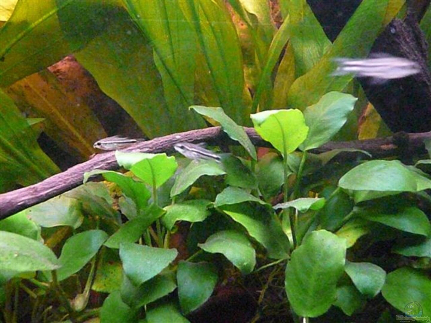 Zur Vervollständigung der Einrichtung wurden noch grö??ere Wurzeln, ??ste und Bambusröhren als Versteck-und Laichplätze für Welse eingebracht. Es wurde auf künstliche Einrichtungsgegenstände verzichtet.