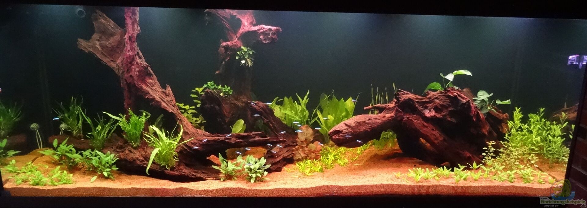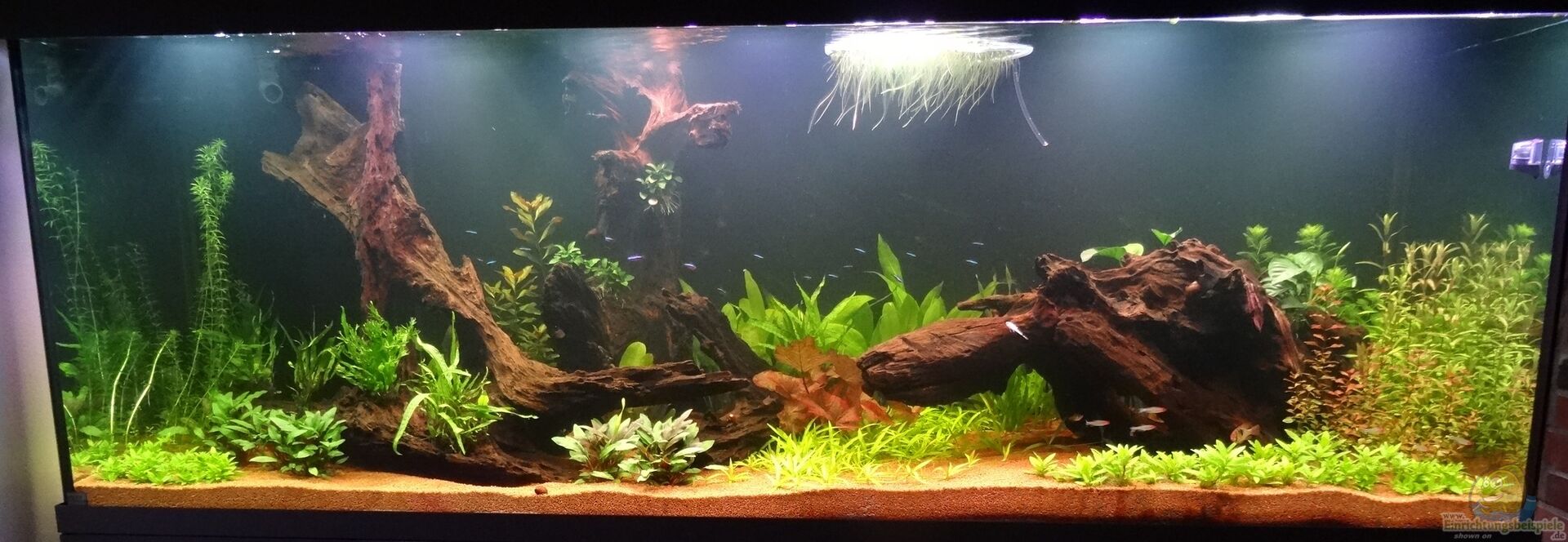 Die Einrichtung ist dir wirklich sehr gut gelungen. Gefällt mir sehr gut. Noch ein Tipp: Damit die Fische auch die volle Höhe ausnutzen und wenn du dir z.B. noch Skalare holen willst, dann brauchst du noch Strukturen in Form von Wurzeln, Steinen oder Pflanzen, die deutlich höher gehen. Dann nutzen auch die Neons die Höhe viel besser aus.