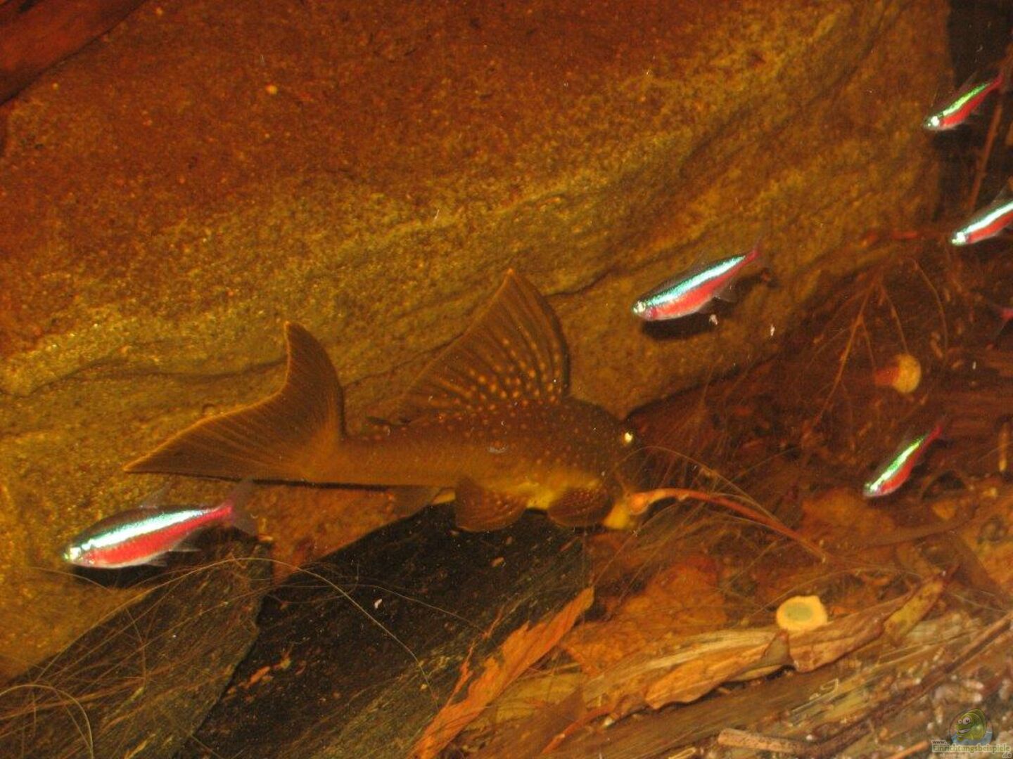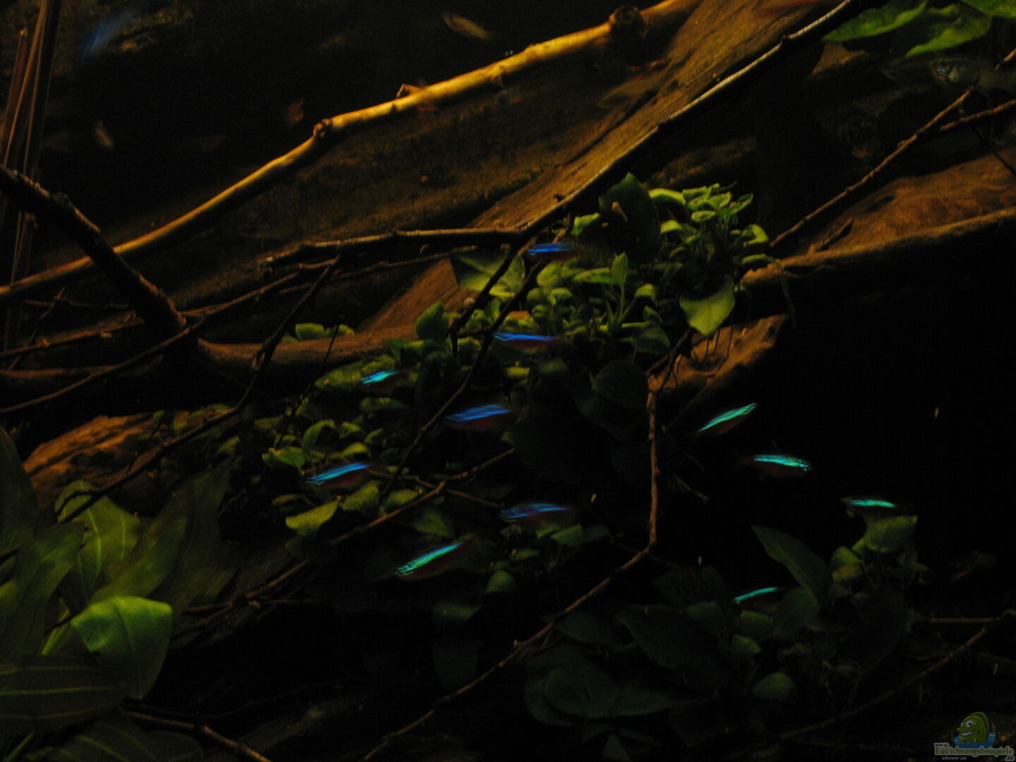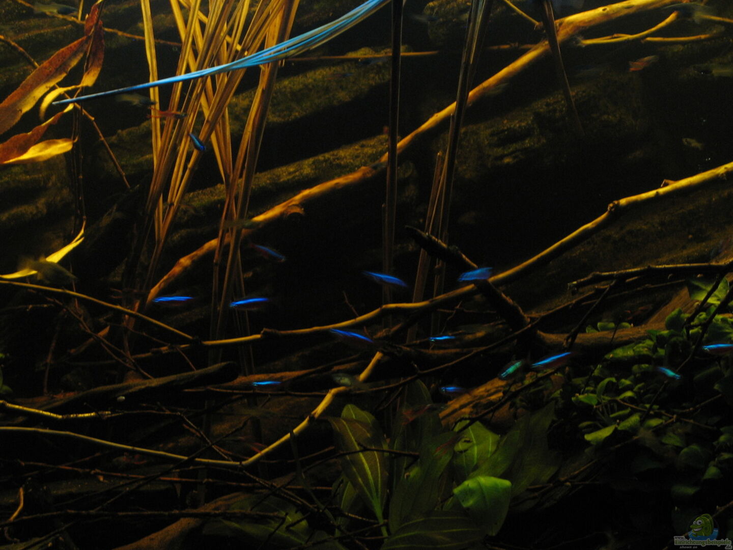 Einsatz seit dem 04.11.2014. Die Tiere haben sich gut eingelebt, alles sind gesund und Munter bis auf einen Kranken, den ich aber aus dem Becken entfernen konnte. Immer wieder hört und liest man in Foren und Berichten über Diskussionen, ob der rote Neon nun ein Schwarmfisch ist oder nicht, ob er ein Klarwasserbewohner oder ein Schwarzwasserbewohner ist oder nicht. Bei mir im Becken zeigt sowohl Schwarmverhalten, als auch Abgrenzungsverhalten (Territorial Verhalten) gegenüber Artgenossen. Ich bin der Meinung, dass der rote Neon, selbst wenn sich das Schwarmverhalten nur im Gefahrenfall oder bei der Flucht zeigt, ein Schwarmfisch ist, der keinesfalls in zu niedriger Stückzahl gehalten werden sollte. Auch bezüglich der Gewässsertypen ist der rote Neon in beiden Habitaten zu finden (Sowohl in stehenden Gewässern bis hin zu strömungsreicheren), deshalb kann hier meines Erachtens nicht pauschaliert werden. Alles in allem ein wunderschöner kleiner Salmler, der zu meinem übrigen Besatz (im Bezug auf die L-Welse) hervorragend passt hinsichtlich des Verbreitungsgebietes als auch auf die Wasserwerte. Mal sind sie agil, mal etwas ruhiger, aber immer kleine funkelnde Diamanten in den unteren und mittleren Wasserschichten.