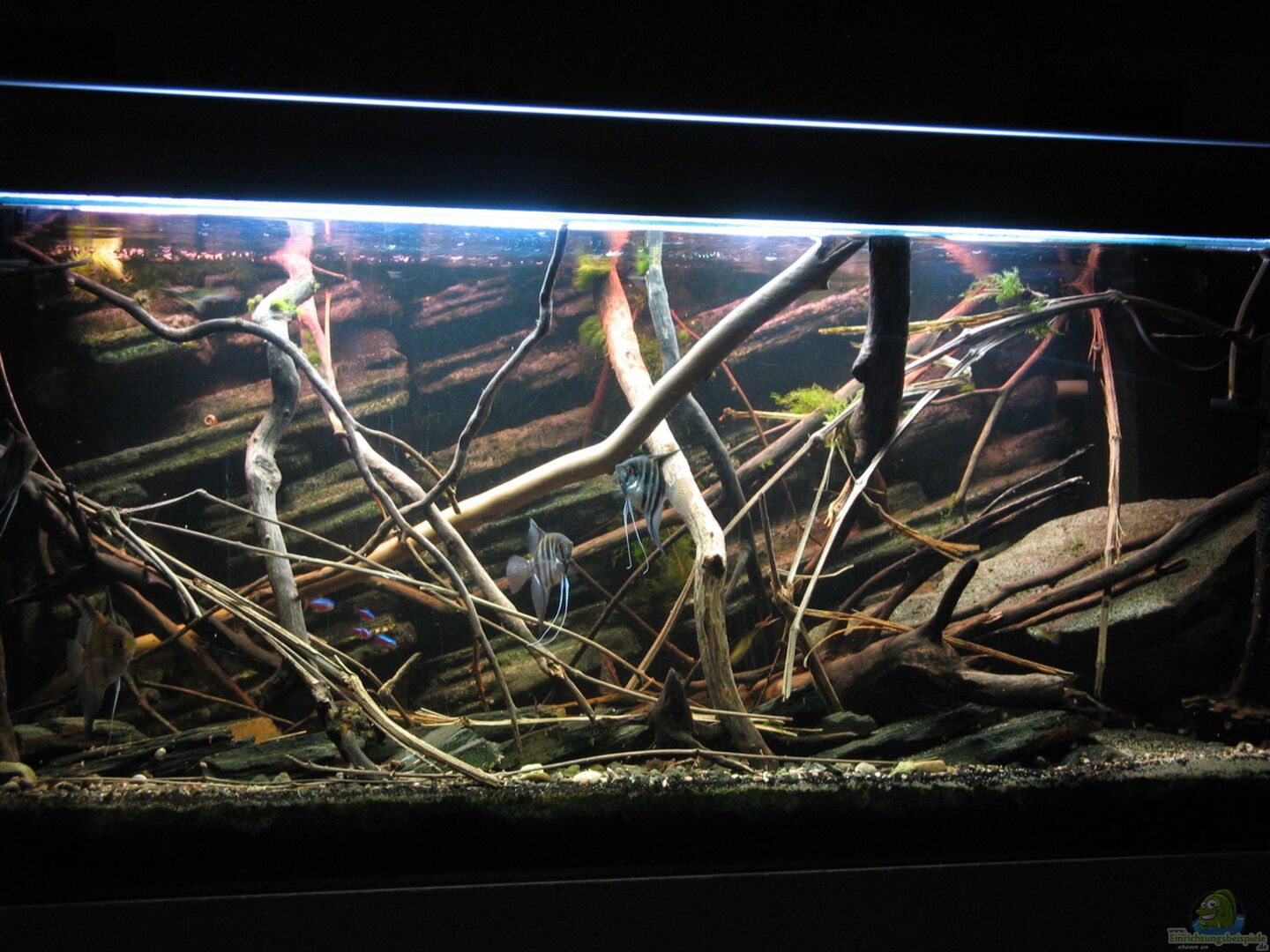 Nachdem sich nun ein weiterer Panik Skalar wohl hinter einem Rückwandmodul getötet hat, hatte ich die Nase voll. Am Freitag wurden die alten Rückwandmodule entfernt. Ich habe keine Skalarleiche entdeckt. Im Zuge dessen habe ich alte Module sowie ein neues (das eigentlich für die Malawi Gestaltung sein sollte) ins Becken getan und komplett umgestaltet. Nun bleibt es vorerst Südamerika, wird aber demnächst als neues Becken vorgestellt.