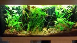 Der Serrasalmus Maculatus ist der letzte meiner Jahre lang gepflegten Piranhas und bewohnt dieses Aquarium allein. Ich habe es vor kurzem für diesen Zweck komplett neu aufgebaut, an sich lief es aber schon seit 2012 (Umzug; auch davor bereits mehrere Jahre) Wie schon geschrieben, lässt der goldene Piranha hier keinen weiteren Besatz zu, es sei denn, dieser lebt quasi stets äu??erst auf der Hut und am besten im Verborgenen, z.B. in engsten Spalten. Dies möchte ich den Welsen, die in Frage kämen, lieber ersparen, da sie früher oder später zumindest halb erwischt würden.. Ab und zu werden kleine Salmler beigesetzt, die aber sukzessive verschwinden.