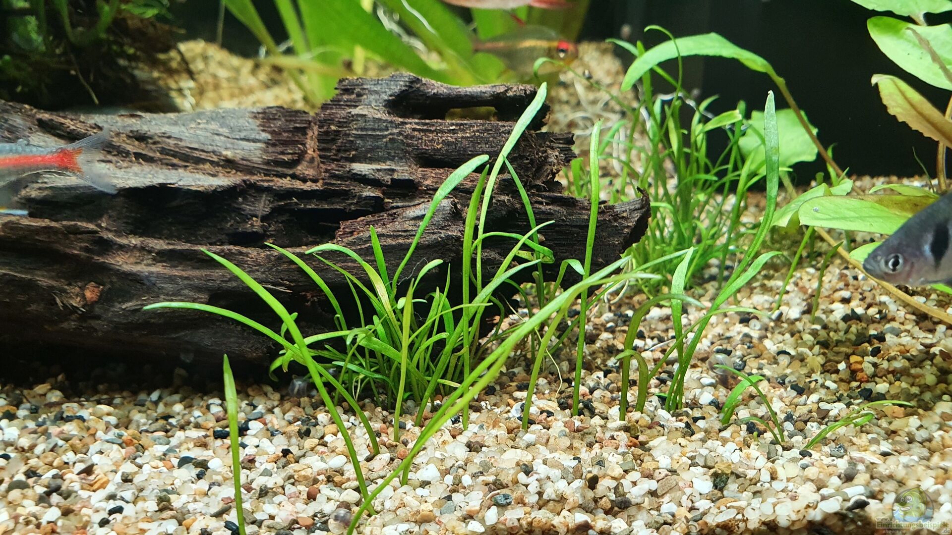 Ich habe ein Paar Schmetterlingsbuntbarsche eingesetzt. Die Wasserwerte sind nicht ganz optimal, aber ich habe auch keine Erfahrung mit Buntbarschen und wollte es mal versuchen. Bolivianische SBB passen eigentlich besser zu den Werten, aber man müsste mehr als ein Paar haben und die können auch mal etwas ruppig zu den anderen Fischen werden. Das wollte ich nicht.