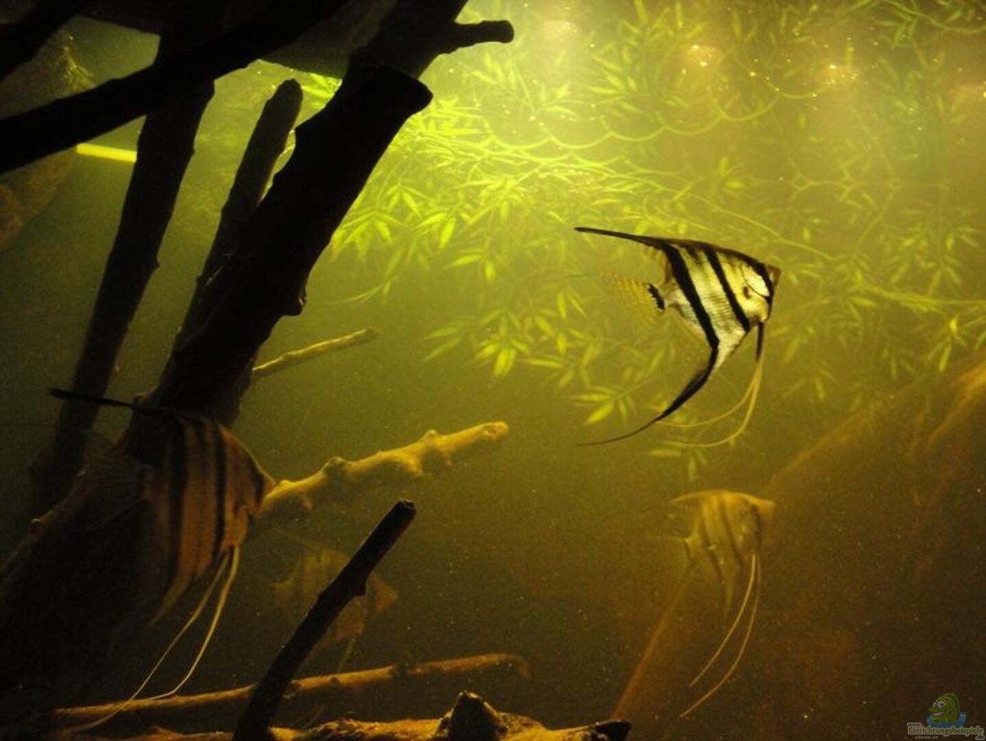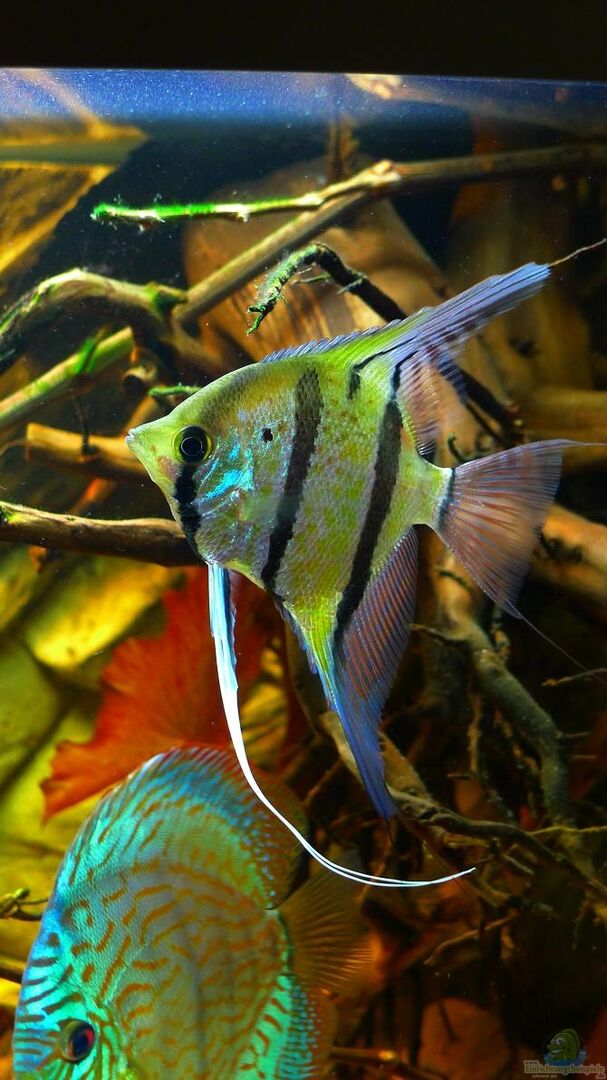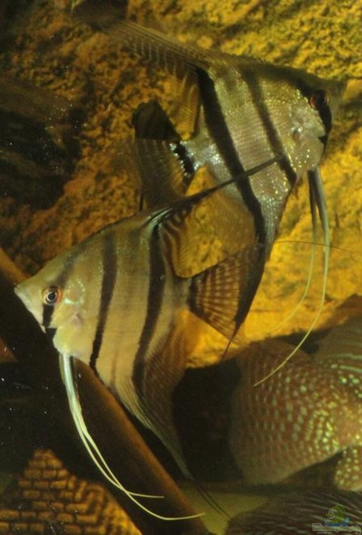 26.04.11: hab heute eine witzige Entdeckung gemacht. die Larven der Skalare schwimmen frei und nun hat ein Teil der Larven ein Diskuspaar als Eltern ausgesucht 8-) hab mich schon gefragt dass das Diskuspaar freischwimmende Larven hat obwohl am Ast frische Eier kleben? hab bemerkt dass die Kleinen die "Eltern" gar nicht abweiden also kann es sich nur um die Skalarbabys handeln :-) Die Disken kümmern sich um die Kleinen und versuchen sie an den Ast zu spucken, wie lustig Disken die Skalare aufziehen ^^