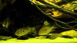 11.09.12 Der kleinste der Flaggenbuntbarsche lag letzte Woche tot im Aquarium :( Es gab vorgängig keine Anzeichen dass er krank sein könnte, hach es war so traurig...heute hat dafür das Pärchen wieder gelaicht, die Geophagus lassen immer mehr Farbe erkennen, es sind einfach tolle Tiere. Die Skalare haben sich einigermassen arangiert, es gibt nur kleinere Streitigkeiten.