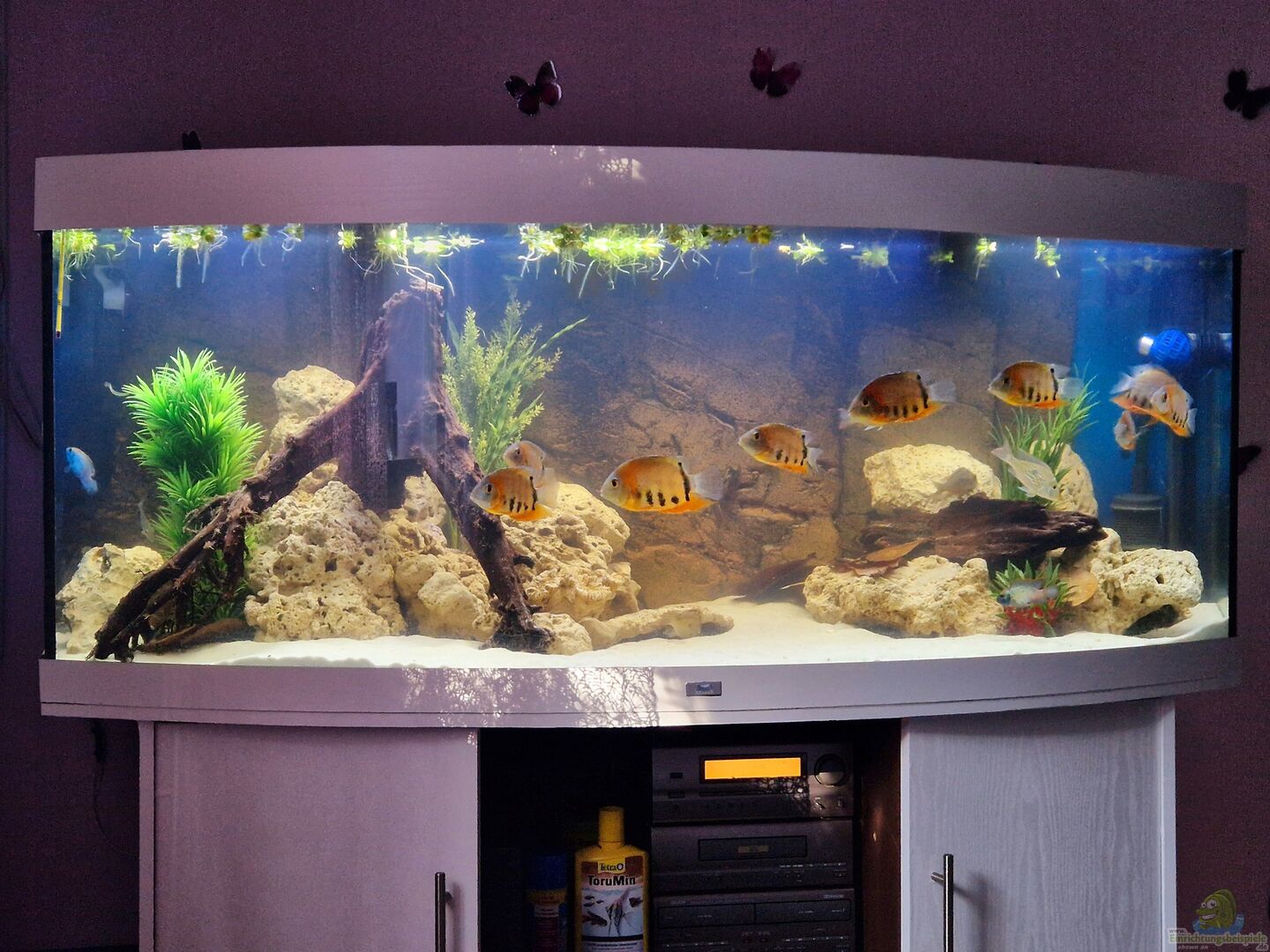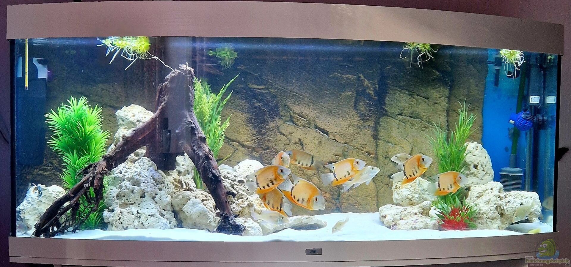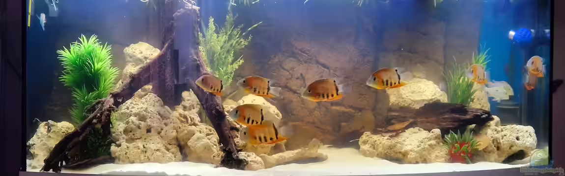 Dein Aquarium ist ja offenbar noch frisch eingerichtet. Da werden sich bestimmt noch einige Änderungen ergeben. Nur mal meine persönliche Meinung: Das helle Gestein passt nicht so sehr in ein Südamerikabecken. Das sollte eher dunkel gehalten werden. Das entspricht eher dem natürlichen Biotop und den Ansprüchen der Fische. Ich würde auch nicht mit künstlichen Pflanzen arbeiten.