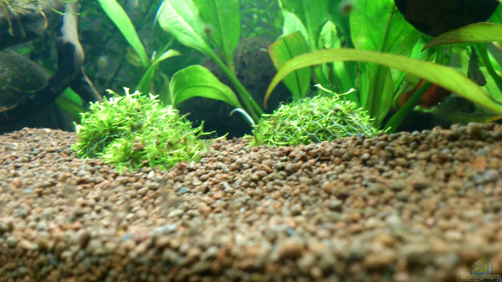 Riccia Fluitans auf PingPong Bälle Bild rechts im boden