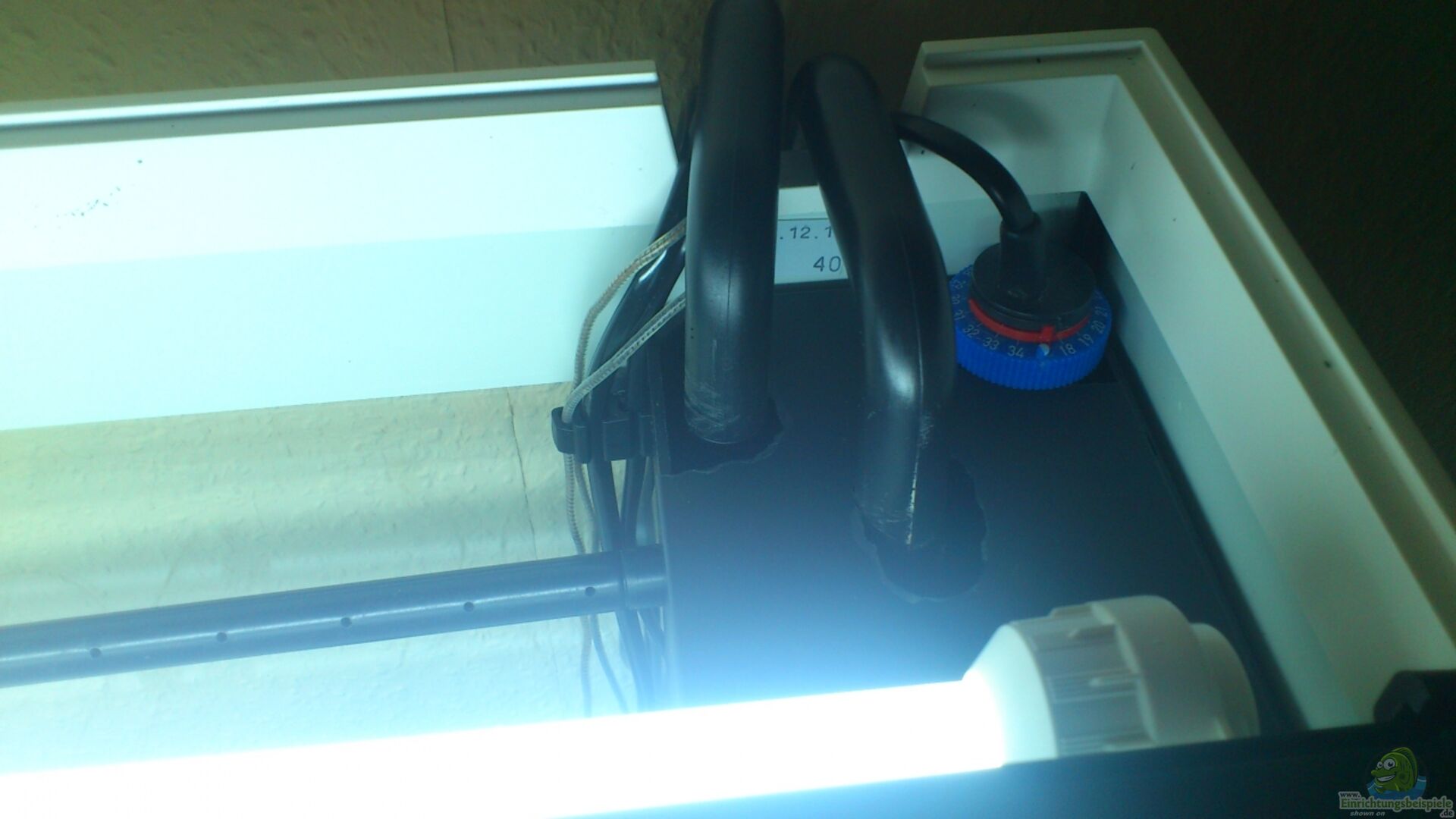 Jäger/Eheim Regelheizer mit 150W eingestellt auf 23 Grad ist im Juwelfilter befestigt.
