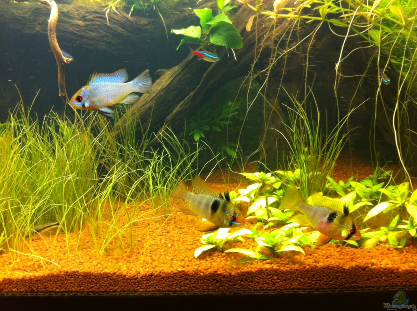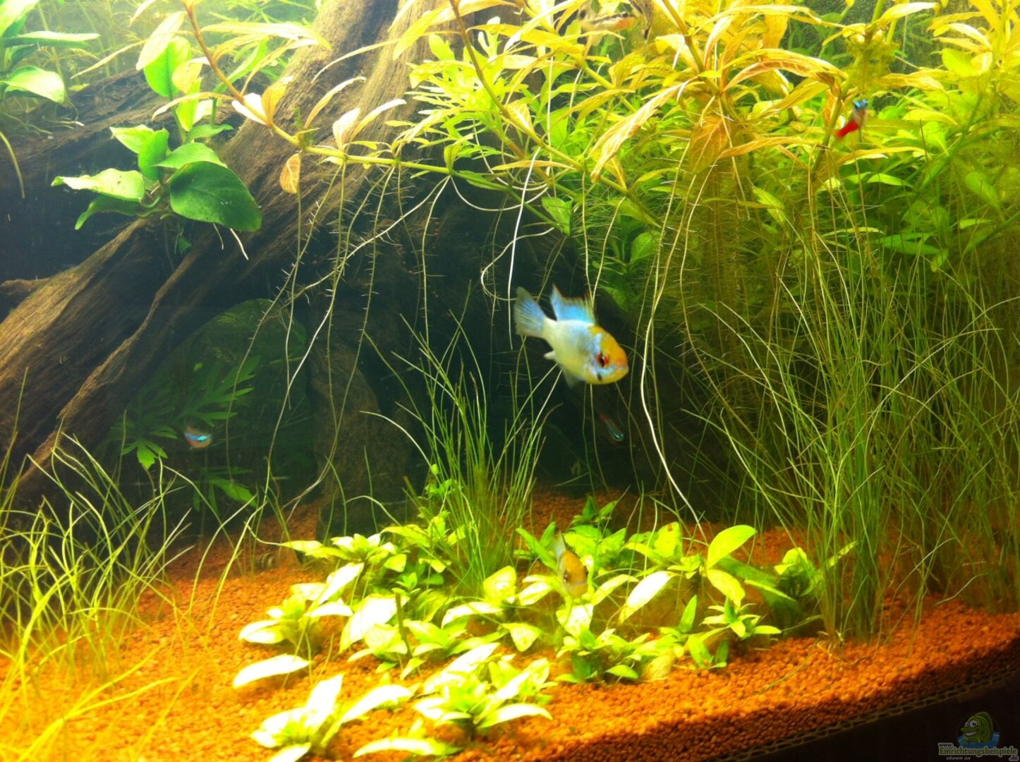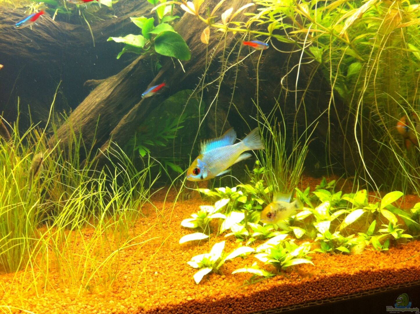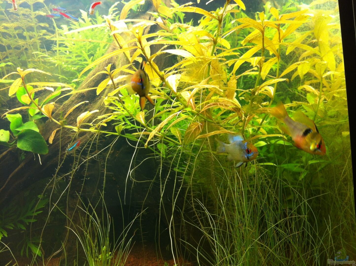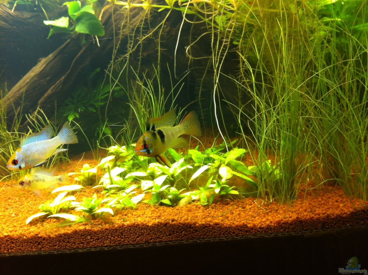 - die Mikrogeophagus ramirezi haben abgeleicht ... sehr schön zu beobachten die abwechselnde Pflege der Eltern - Tiere