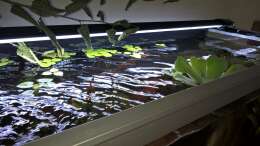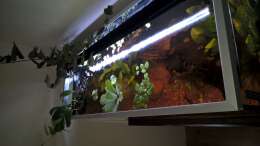 Das Becken ist ein Fluval Roma 200. Habe die werkseitig mit Silikon verklebte Abdeckung entfernt und den oberen Beckenrand mit eloxiertem Aluminium Profilen verblendet.