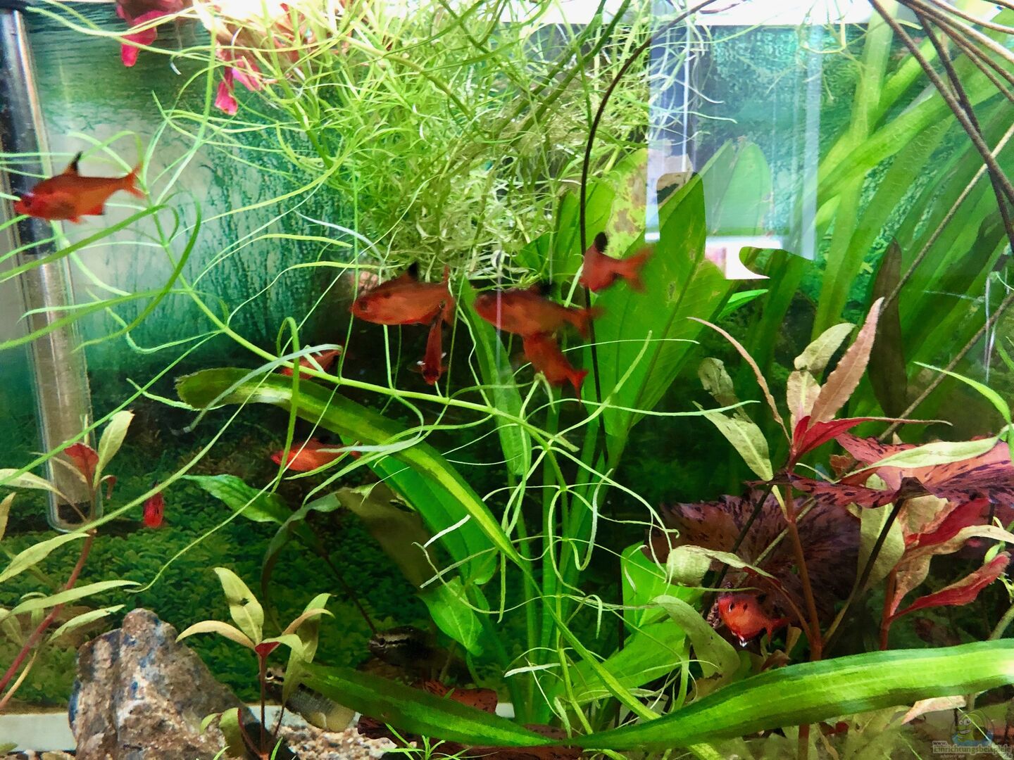Eigentlich wollte ich das Becken so langsam richtig einlaufen lassen (Algen noch etwas abwarten, bis diese weg sind...) - doch da das erste Pärchen der Laetacara dorsigera heute (10. April 2019) freischwimmende Jungtiere hat, wollte ich Euch das nicht vorenthalten...