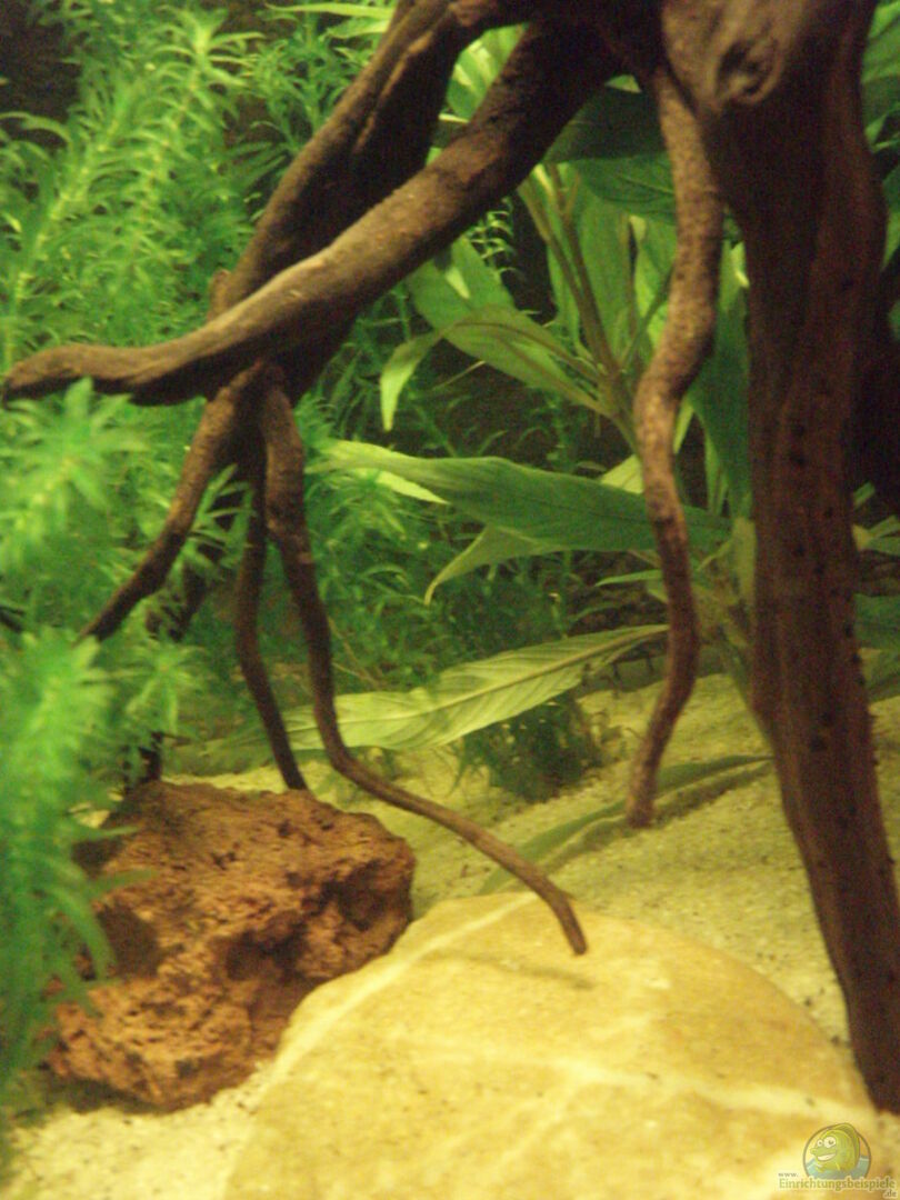 Somit ist noch kein Besatz vorhanden.Der Stein auf der Wurzel dient momentan noch zur Beschwerung derselbigen, da sie noch ein wenig Auftrieb hat.