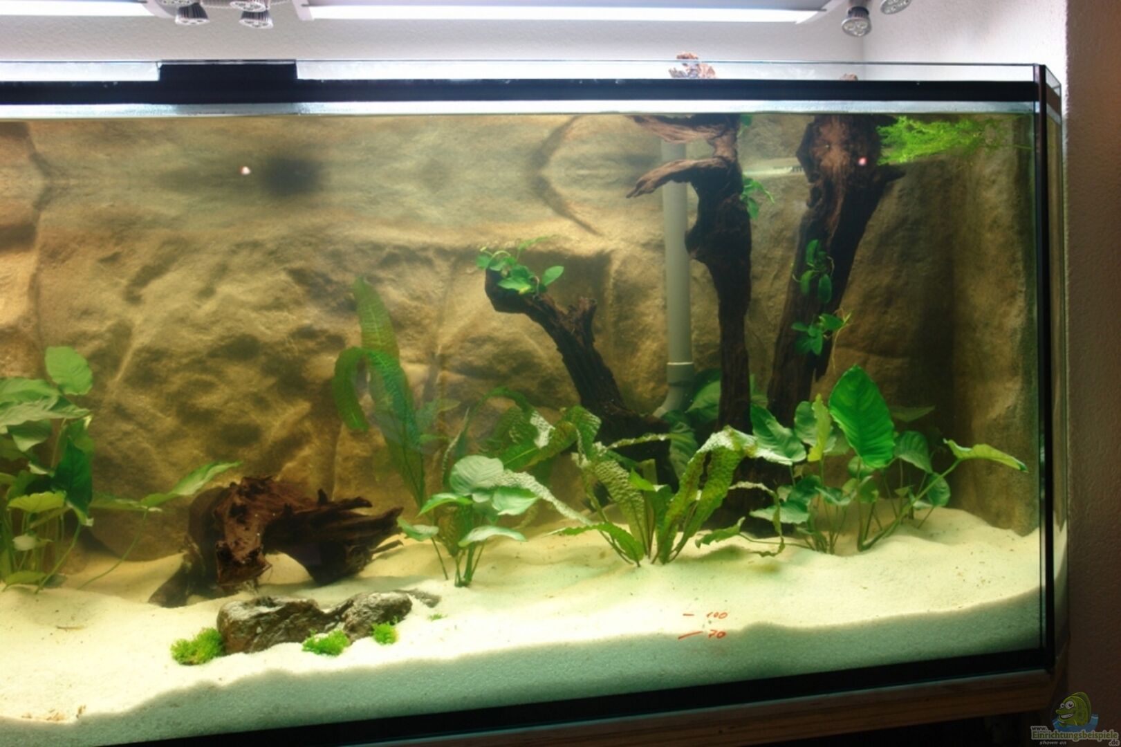 Als Bodengrund möchte ich wei??en Sand verwenden. Damit das Becken nicht zu hell wird, und sich die Welse wohlfühlen wird die Beleuchtung eher schwach ausgeführt.