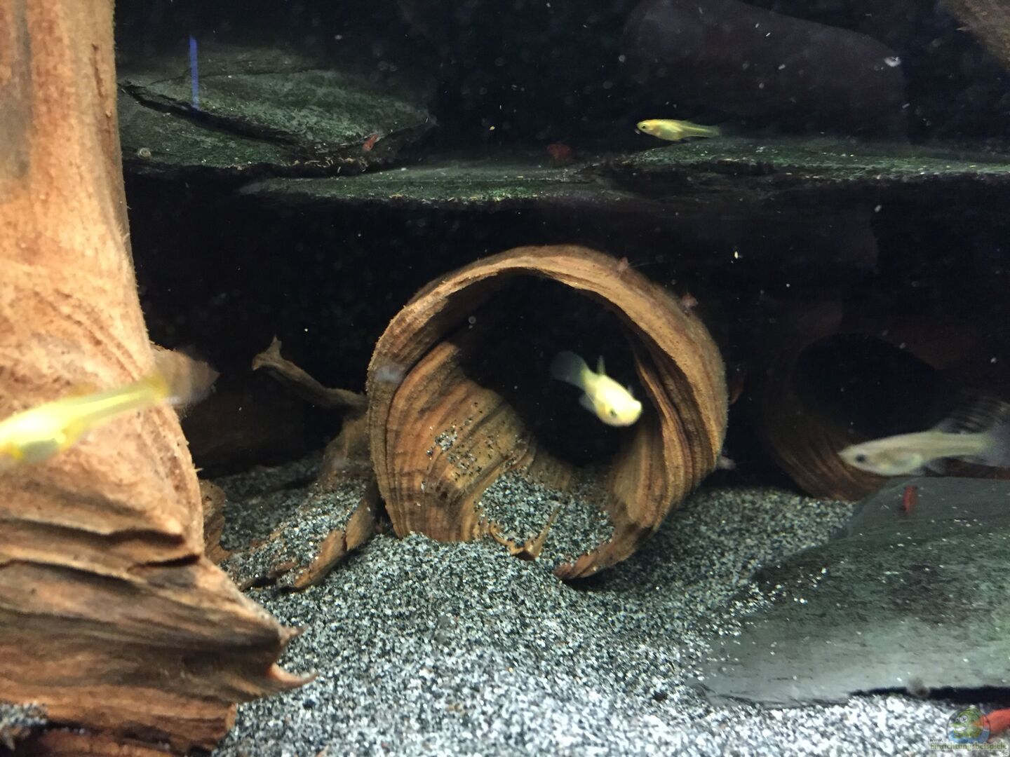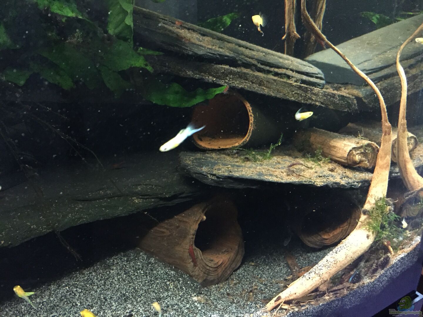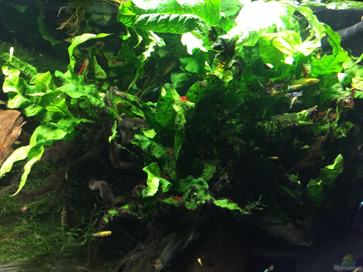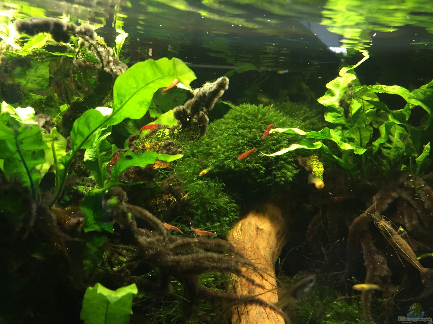Wie fast in jedem meiner Becken sind diese flei??igen und hübschen Resteverwerter eingesetzt. Die Junggarnelen werden gerne von den Guppies gefressen, aber es kommen immer mal welche hoch.
