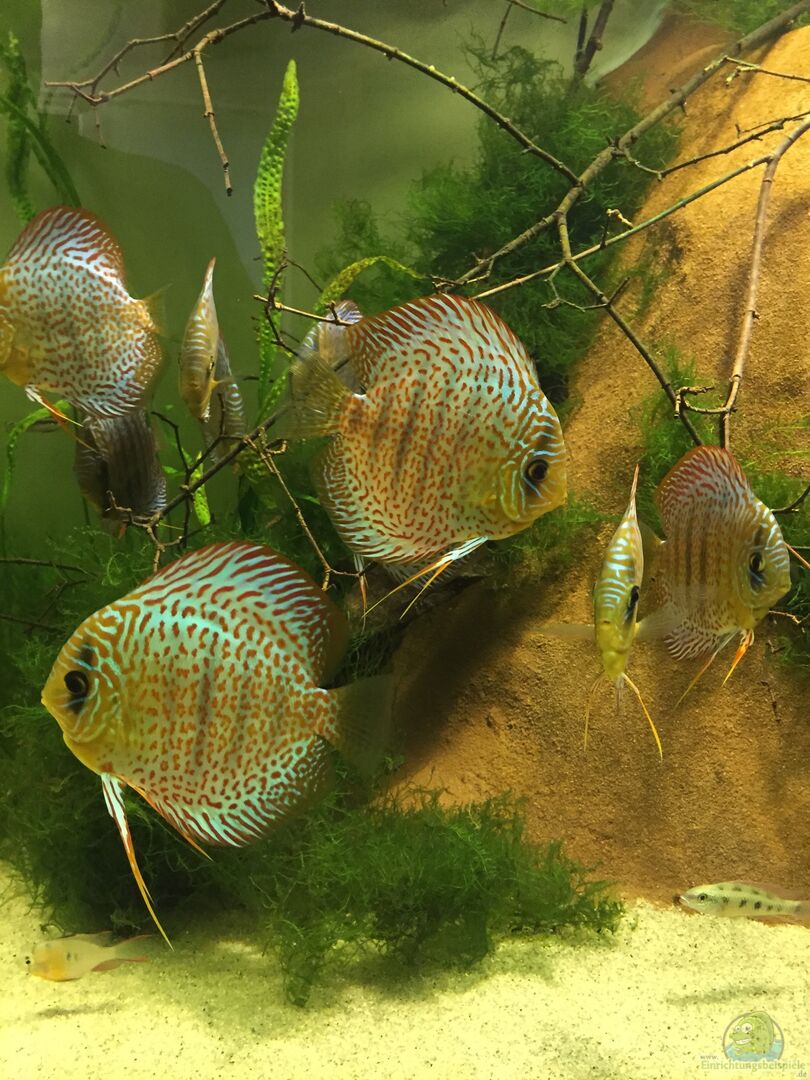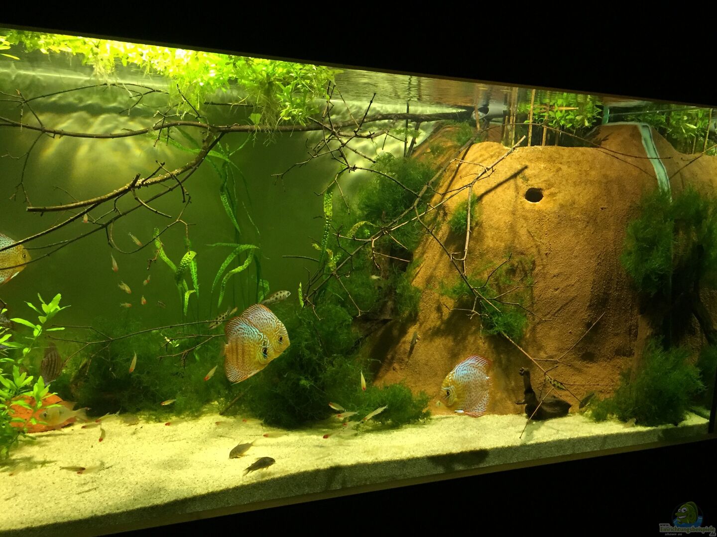 Ich habe versucht einen möglichst naturnahen Biotopausschnitt zu formen mit genügend Schwimmraum für die Diskus, die in der Natur gern zwischen Geäst stehen, und für die Zwergcichliden die ein gut strukturierten Bodenbereich bevorzugen mit der Möglichkeit im Flachwasserbereich Schutz bzw.Ruhe zu finden.