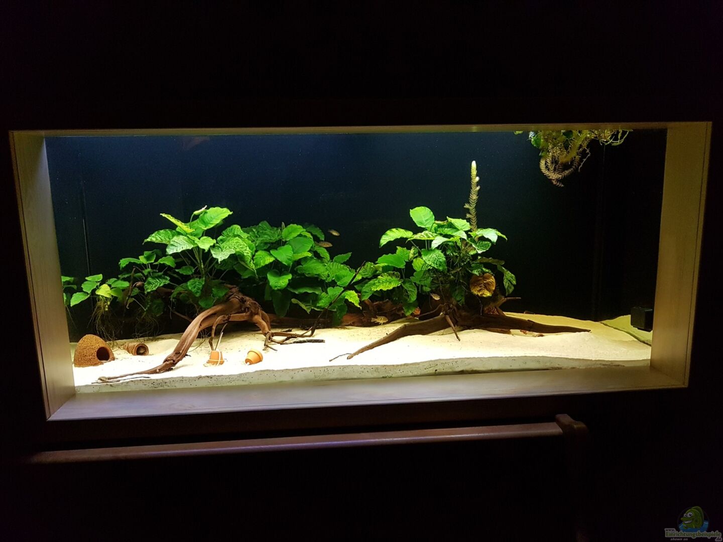 Das Aquarium wird einmal durch die Fu??bodenheizung auf 23 Grad vorgeheizt (nur während der Heizperiode), zusätzlich ist ein 300 Watt Heizstab im Betrieb der die Wassertemperatur auf 26 Grad hält.