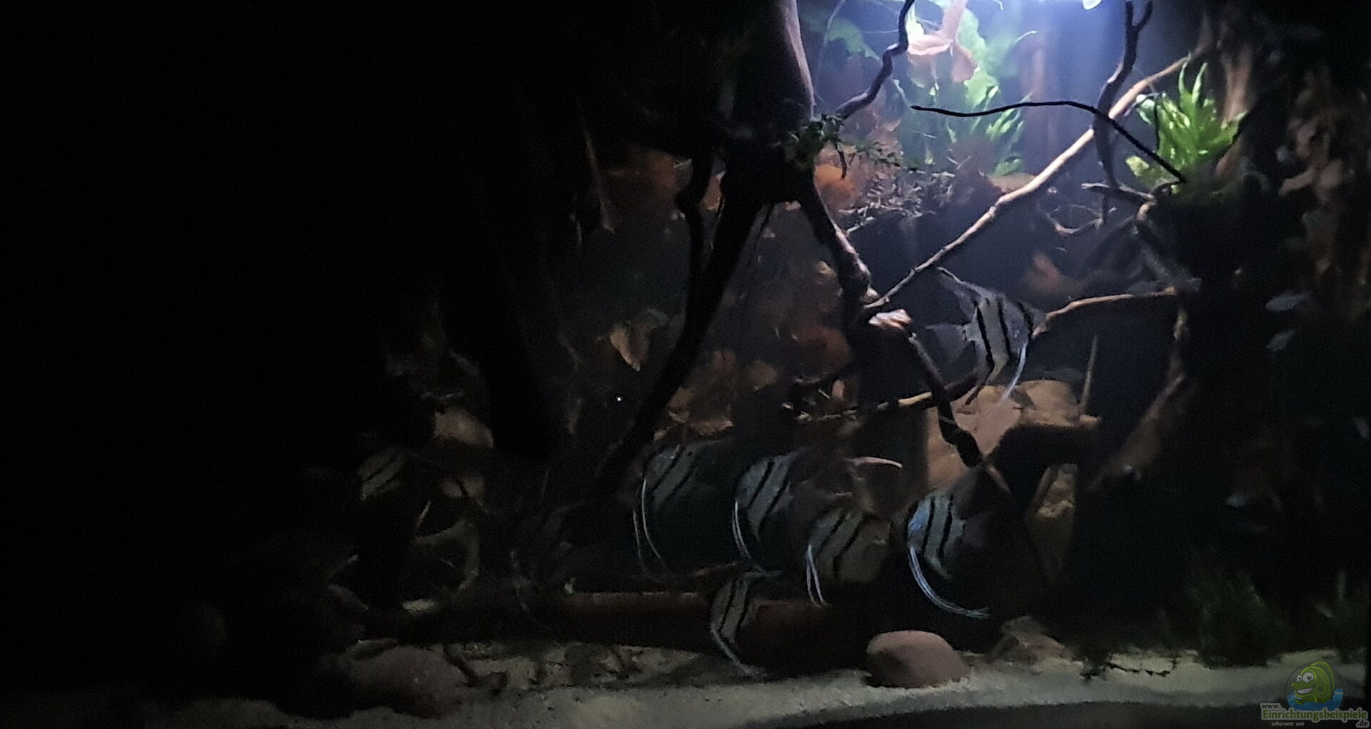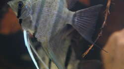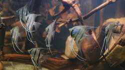 In den letzten 3 Wochen wurden die Skalare zunehmend scheu und verschwanden, sobald sich was vor dem Becken bewegte, hinter Wurzeln und Buchenästen. Eher untypisch für Skalare, die eigentlich immer, um Futter bettelnd an der Scheibe stehen.