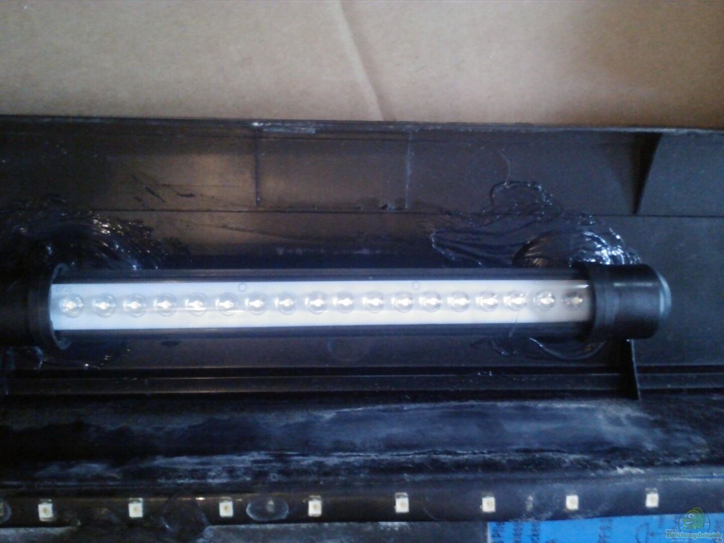 T8 Beleuchtung ausgebaut, und durch eine 30er LED Röhre(3Watt) ersetzt, um eine etwas dunkle schummrige Atmosphäre zu bekommen.