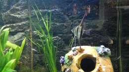 Ich denke, dass dein Aquarium noch recht frisch eingerichtet ist. Persönlich würde ich statt der künstlichen Einrichtungsgegenstände lieber noch viel mehr Wurzeln ins Becken packen, um eine natürlichere Optik zu bekommen.