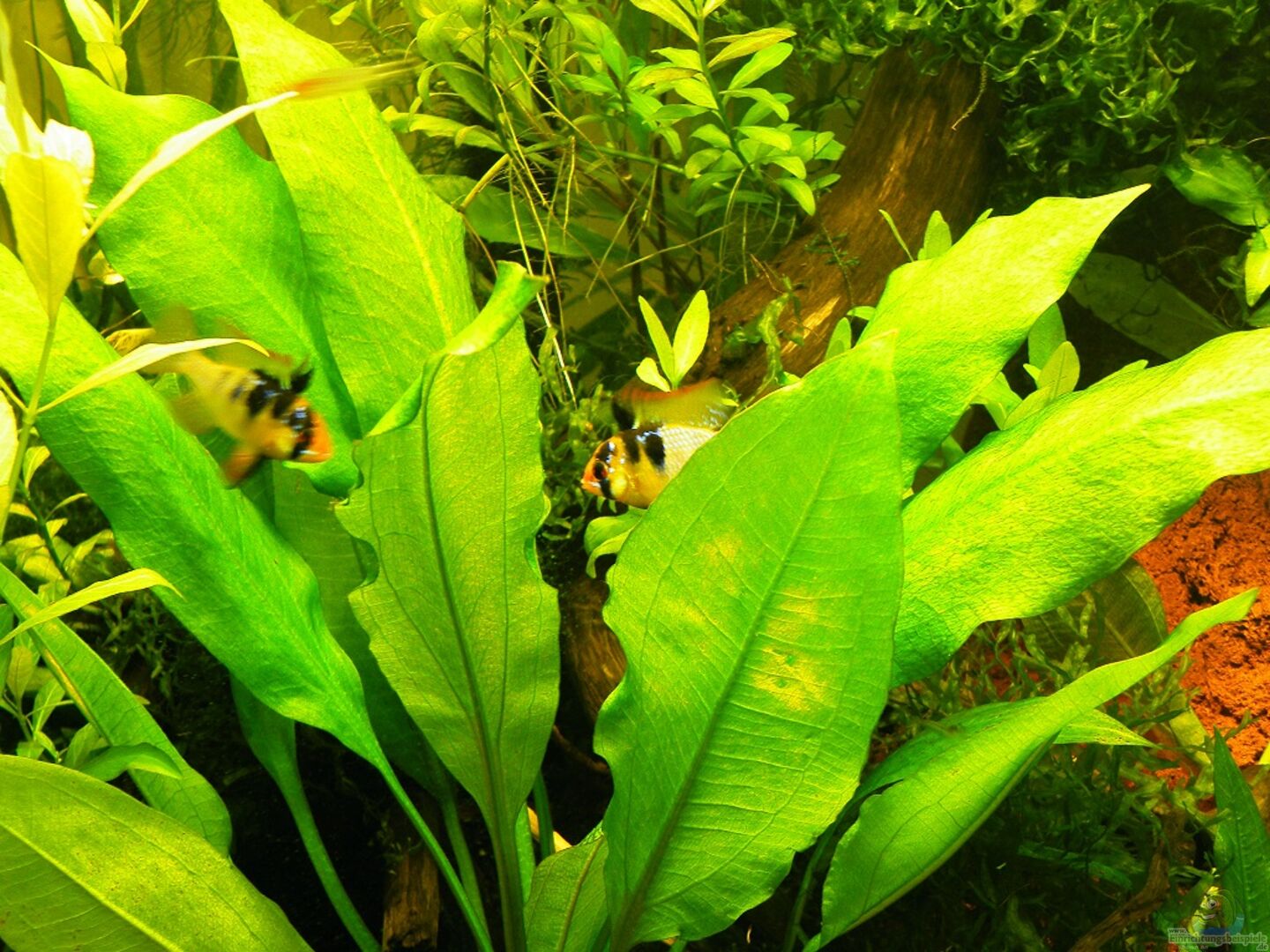 Südamerika freut mich.Der einzige Wehmutstropfen ist das Jivana dafür weichen musste, das Becken war einer meiner ganz grossen Favoriten hier bei EB. Aber ich kenne das wenn es wieder in den Fingern juckt =).Sieht echt schon klasse aus dein Becken.Habe gesehen du pflegst 2 Paare Ramirezi und 2 Paare Borellis, wie ist den so die Verträglichkeit bei dir ? Gehen sie sich aus dem Weg oder haste ein sehr dominantes Männchen dabei ? Habe gelesen das du die asiatischen Pflanzen nach und nach aus dem Becken entfernen willst.Also ich würde das nur aus dem Spartengrund nicht machen habe in meinen Becken auch jeweils Pflanzen die nicht vom selben Kontinent stammen und muss sagen finde das tut der Sache in keinster weise einen Abbruch.Setze hier eigentlich mehr auf Optik, die bei dir ja wie gewohnt Hammer ist =) Nur die kleinen Pflanzen im Vordergrund(kann sie leider nicht zuordnen) sind von der Anordnung nicht so meins, sieht etwas kuddel muddel aus aber da hat ja jeder seinen individuellen Geschmack und das ist auch gut so.Bin gespannt wie sich das ganze entwickelt.
