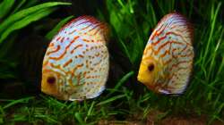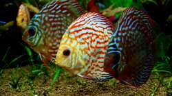 Seit einiger Zeit frage ich mich, ob es eine Sorte Diskus gibt, die klein bleiben!? Soweit ich herausfinden konnte sind meine Disken nahezu gleich alt. Lilo und Stitch (2Pigeon blood), Nemo und Paolo (2 Santarem) habe ich seit 7 Monaten, Chip und Chap (2 Rot-türkis) kamen 2 Wochen später. Alle (ausser Nemo) waren ca. 7-8 cm gross. Mittlerweile sind Lilo, Stitch und Paolo ca. 11-12 cm gross und Nemo (hat sich rangehalten!) ist ca. 10 cm. Chip und Chap dagegen sind immer noch ca. 8-9 cm, also kaum gewachsen.