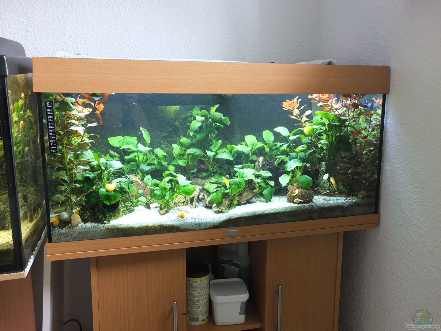 Auch mein 2. Becken mit 200 L und Struktur Rückwand wurde kompl.als Gebrauchtbecken mit passendem Unterschrank gekauft, ist ein Becken der Firma Juwel und war eigentlich mit einem eingebautem Innenfilter.Die Rückwand war schon so drin Orginal von Juwel und gefiel mir sofort sehr gut. Den Innenfilter habe ich aber entfernt weil der viel platz weg nahm und mir der Filterkasten nicht gefiel. Habe den dann durch einen Aussenfilter unten im Schrank gestellt und ersetzt.Genial finde ich bei dem Becken die aufgeteilte Abdeckung mit den 2 klappen da kommt man überall gut dran ohne die ganze abdeckung ab zu machen und dazu mit der integrierten guten LED Beleuchtung und die Aussparungen für den Futterautomaten sind auch noch dran.