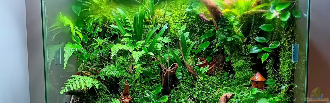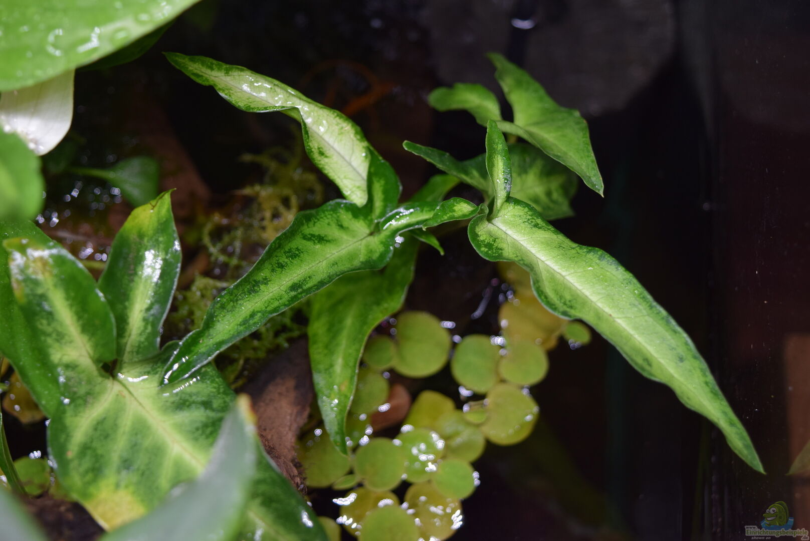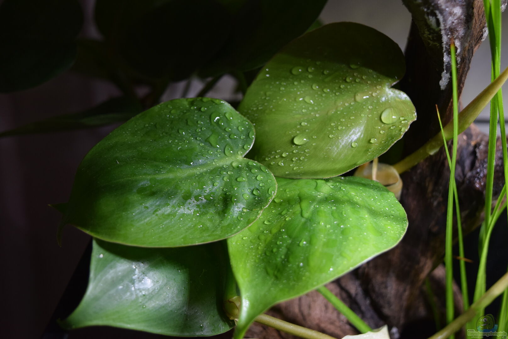 Die Pflanzen über Wasser, also Acorus, Epipremnum, Syngonium, Spatiphyllum wachsen hervorragend und sind meiner Meinung nach optimal für die Art von Paludarium geeignet,
