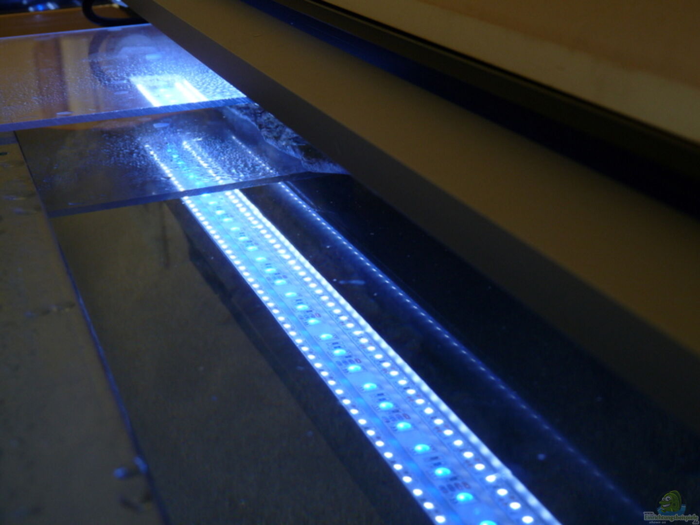 Da dies ein pflanzenloses Becken werden sollte war es auch gleich eine gute Gelegenheit bei der Beleuchtung auf energiesparende LED Technik umzusteigen und zu testen.