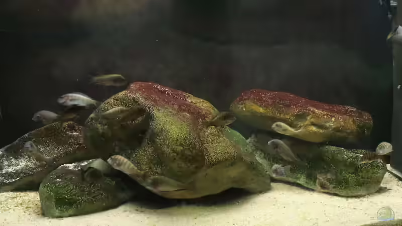 Es sind einige Riverstones von Rockzolid im Becken, die für Struktur sorgen und Rückzugsmöglichkeiten für die Tropheus schaffen.
