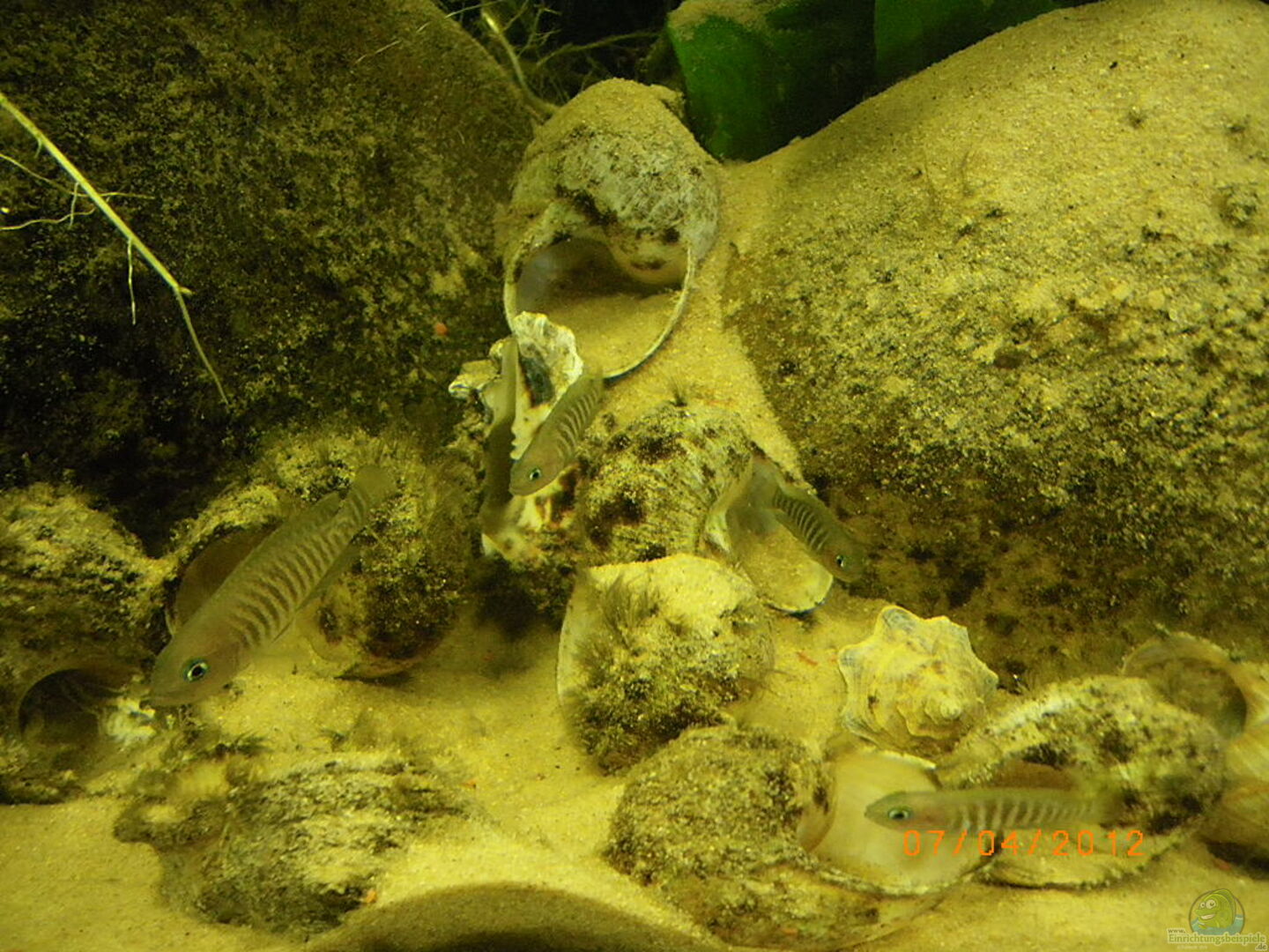 Bei der Beckeneinrichtung sollte man sich lieber gar nicht erst zu viel Mühe mit einer optisch möglichst ansprechenden Gestaltung machen. Alles was man tut, ist ausschliesslich als Vorschlag an die Bewohner des Beckens zu verstehen. Meiner Erfahrung nach haben diese jedoch meist sehr eigene Vorstellungen davon, wie ein optimales Revier für einen N. multifasciatus auszusehen hat.