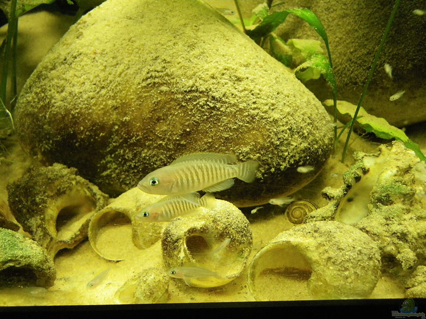 Drei Schneckenbuntbarsche sind seit 2 Wochen eingezogen und freuen sich bester