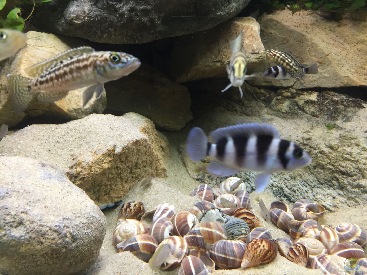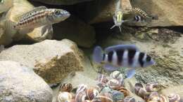 Gruppe von ca. 15 Tieren Lamprologus multifasciatus plus Jungfische(Tiere sind ausgezogen, nachdem der Lepidolamprolugus gemerkt hat wie gut frischer Fisch schmeckt) wurden alle paar Tage weniger