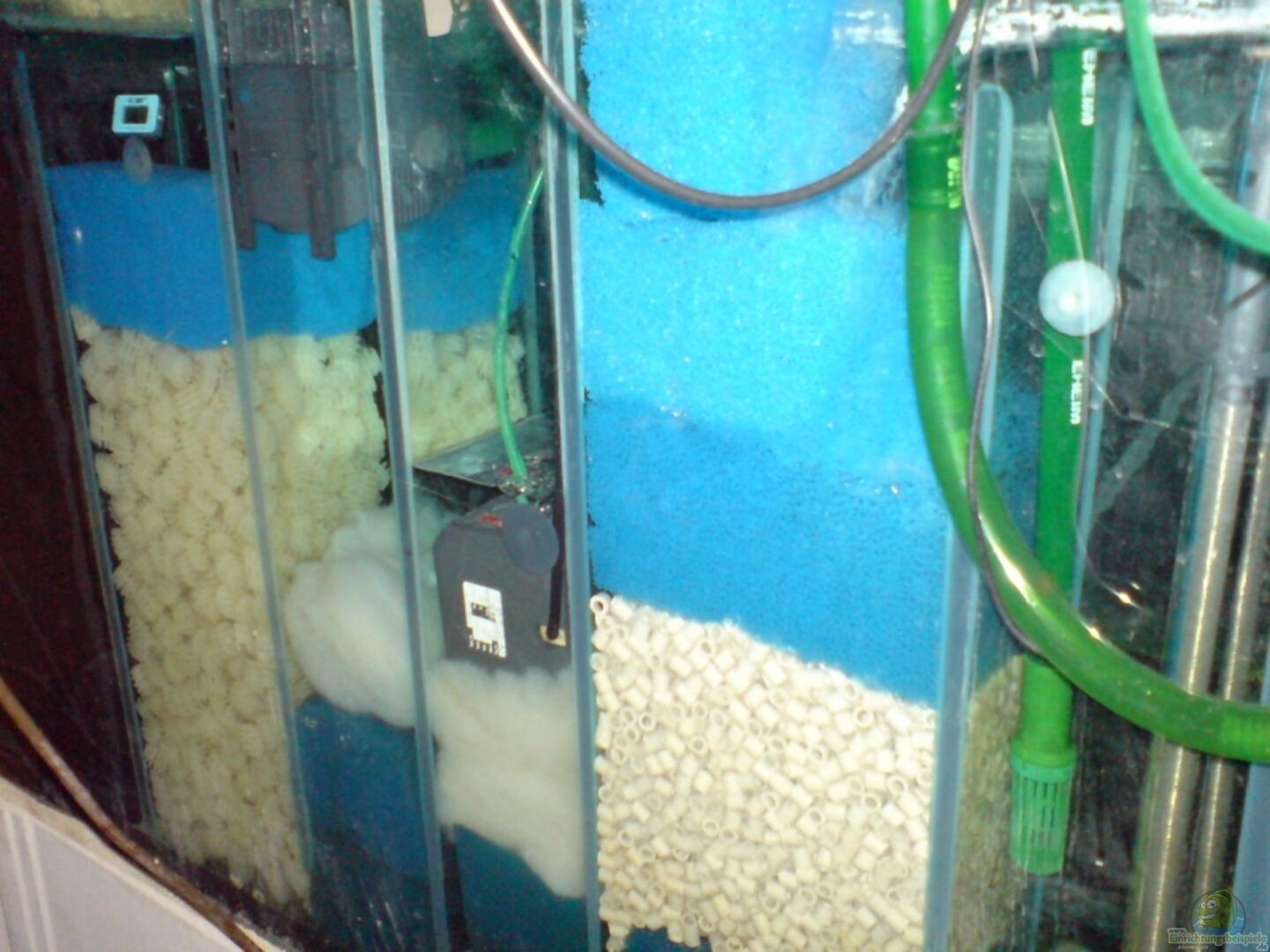 170 liter - 5 Kammer-Innenfilter, betrieben wird dieser mit 2 Eheim Kreiselpumpen 1262 á 3400l/h!!