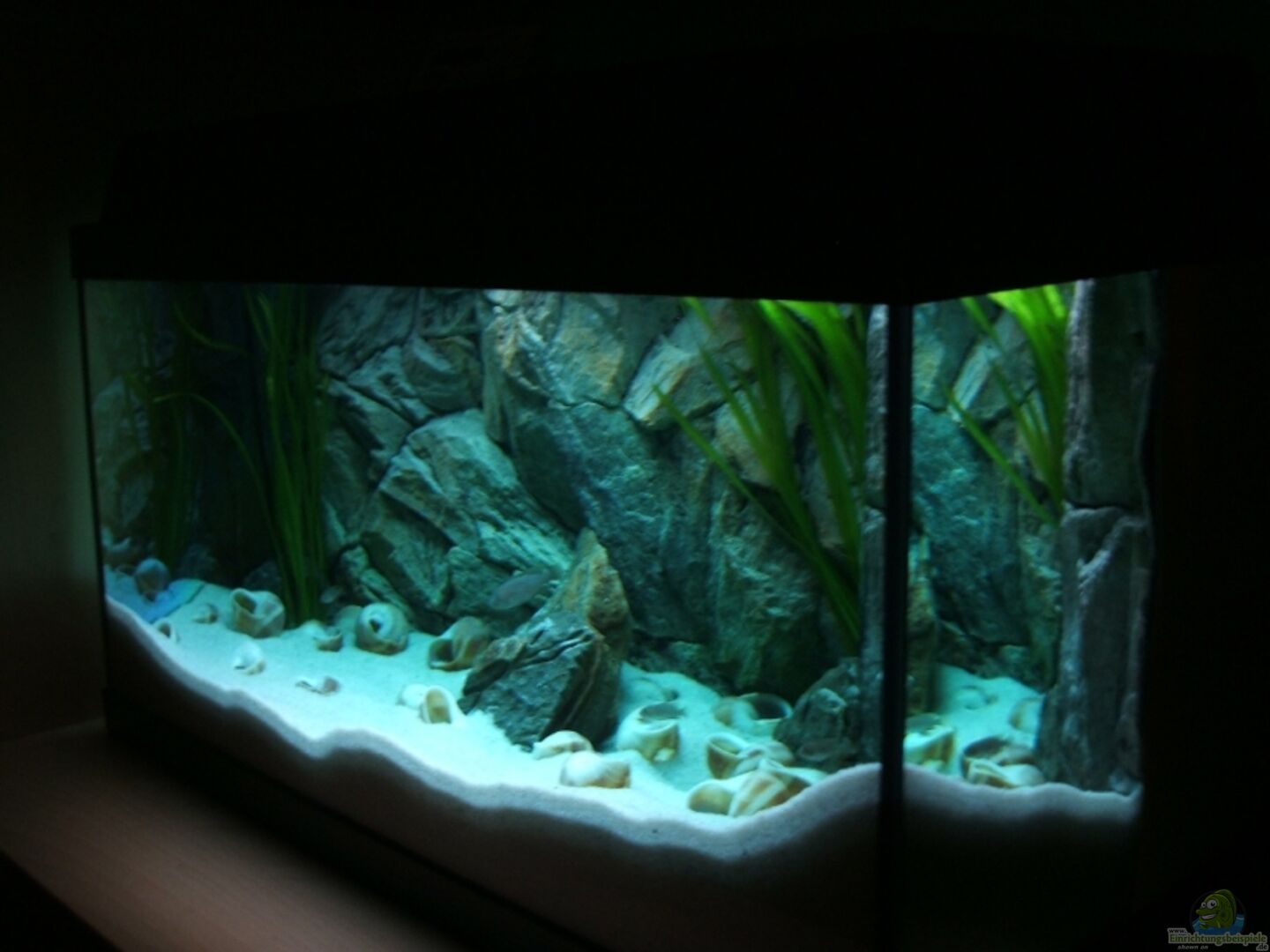 Rückwand (Diese hat aber nur im oberen Bereich eine Tiefe von 6cm, im unteren Bereich bis 2/3 Beckenhöhe ist sie nur 1, 5cm dick und nimmt nicht viel Schwimmraum und Grundfläche in Anspruch. Da die Beckengrundfläche bei den Neolamprologus multifasciatus wichtiger als die Beckenhöhe ist, habe ich mich für diese Rückwand entschieden.)