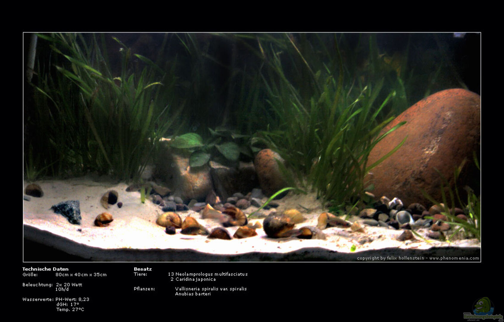 Man ist das gut man ! Gutes Beispiel, was man alles aus einem so ein kleinen Tanganjika AQ rausholen kann. Optimal für die Schneckenbubas ! Nur, es fehlen Fotos !