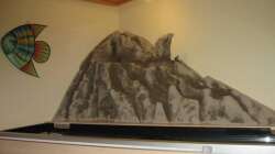 Rückwand aus Styropor mit Fliesenkleber überzogen und bemalt