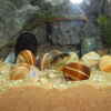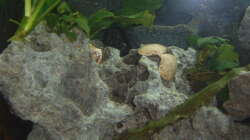 Rückwand: aus Plastick ist etwas veralgt war mal in einen Malawi Becken und hat einige Höllen 5Steine graues Lochgestein, 12 Schneckenhäuser von Weinbergschnecken, 3 Miesmuscheln, 6 Muscheln von einem Muschelmix von Merkur.
