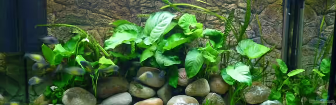 Die Bepflanzung von Tropheus-Becken kann deren Besitzer vor eine harte Geduldsprobe stellen. Weiche bis mittelharte Pflanzen oder Pflanzen mit kleinen Blättern scheinen nur wenig geeignet, da die Trophis sie in wenigen Tagen bis auf die Wurzel oder zumindest auf die Stengel runtergefressen haben. Meine Tropheusbecken waren bisher immer gut bepflanzt. Dies gibt nicht nur ein harmonisches Bild im Wohnzimmer, sondern hilft auch dem Wasser ein paar Schadstoffe zu entziehen und bietet zusätzliche Versteckplätze. Bei mir haben sich Nymphea lotus (roter Lotus), Anubias, Bolbitis heudeloti (Kongofarn) sowie verschiedene Echinodorus- und Cryptocoryne-Arten als geeignet erwiesen. Kein Glück hatte ich mit dem Schwarzwurzelfarn, Microsorum pteropus, der wurde in kurzer Zeit bis zum Rhizom weggefressen.