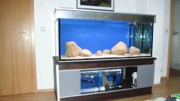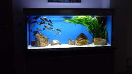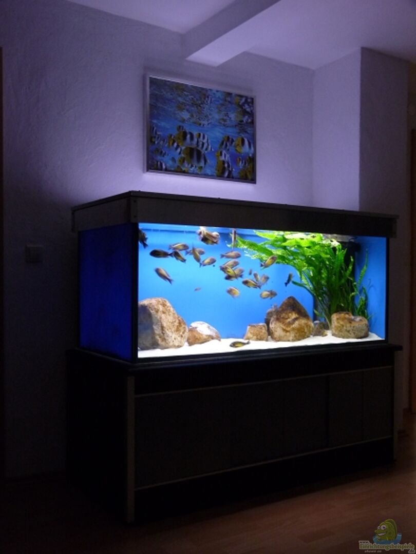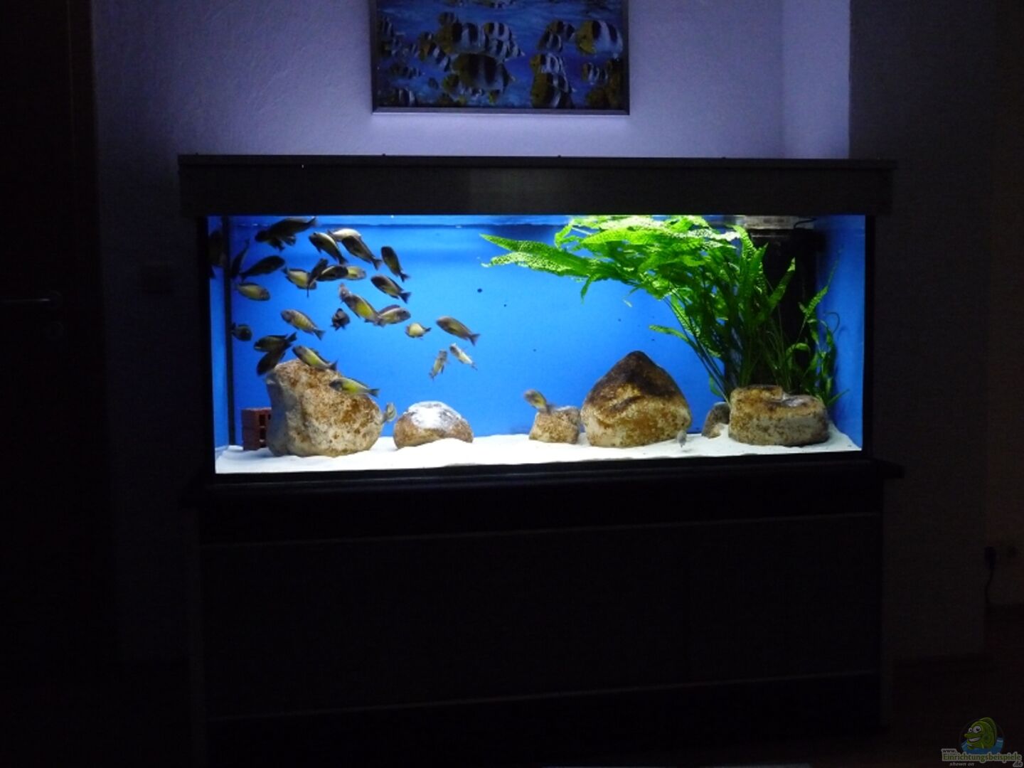 Das Becken ist von der Einrichtung her gut geeignet für Tropheus. Die Anordnung der Steine lä?t wenig Spielraum für Reviere. Die Tiere stehen dadurch gut im Vordergrund.