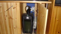 Die Abdeckung und der Aquarienschrank sind selbst gemacht.
