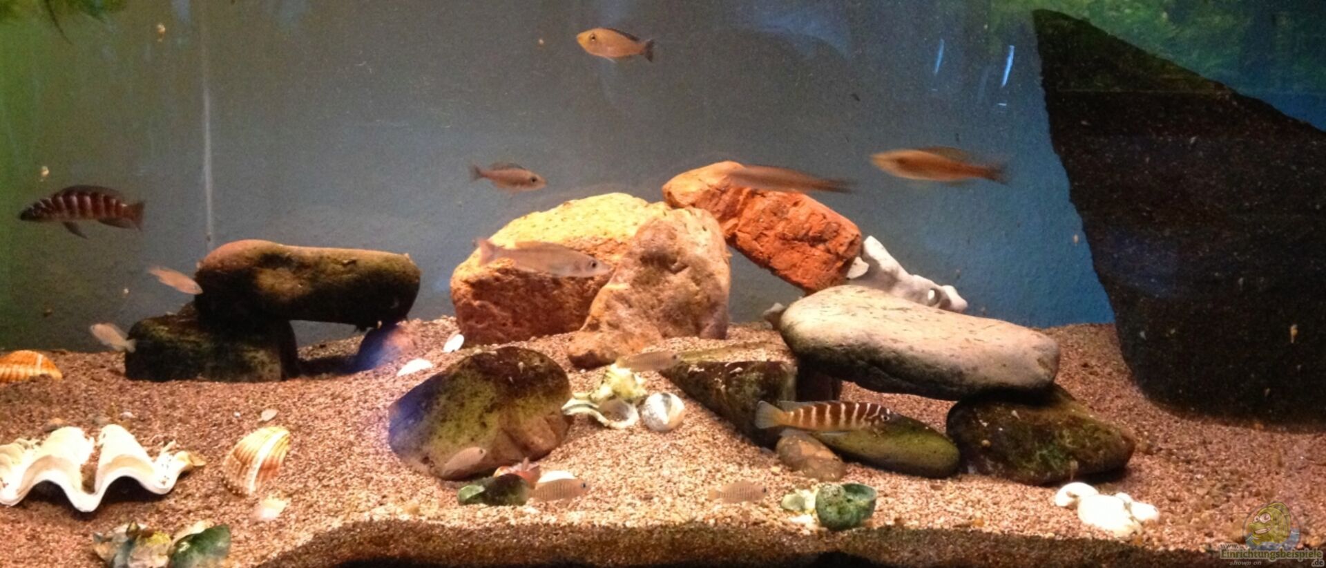 Neolamprologus multifasciatus: 3w, 4m (Besatz wird bei fortbestehendem Ungleichgewicht noch mit Weibchen