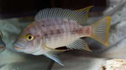 1 kleine Gruppe halbwüchsiger Tropheus moori Moliro und ein Petrochromis sp. Mtoto Yellow.
