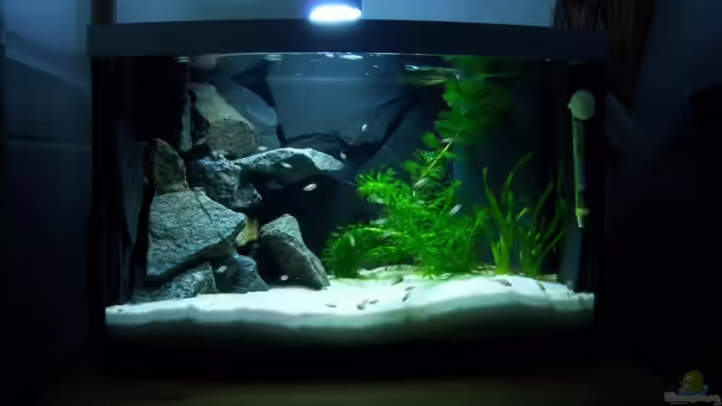 Dieses Becken war eigentlich nur eine Notlösung und sollte vorübergehend als Unterkunft sorgen. Jetzt die die beiden schon eine ganze weile in diesem Becken und haben sich auch schon vermehrt. Es sind ca. 20 Jungfische von 1-2cm im Becken. Allerdings steht ein Umzug in eine neue Wohnung an und somit auch der Kauf eines 576l Beckens, welches dann das neue Zuhause der kleinen wird.