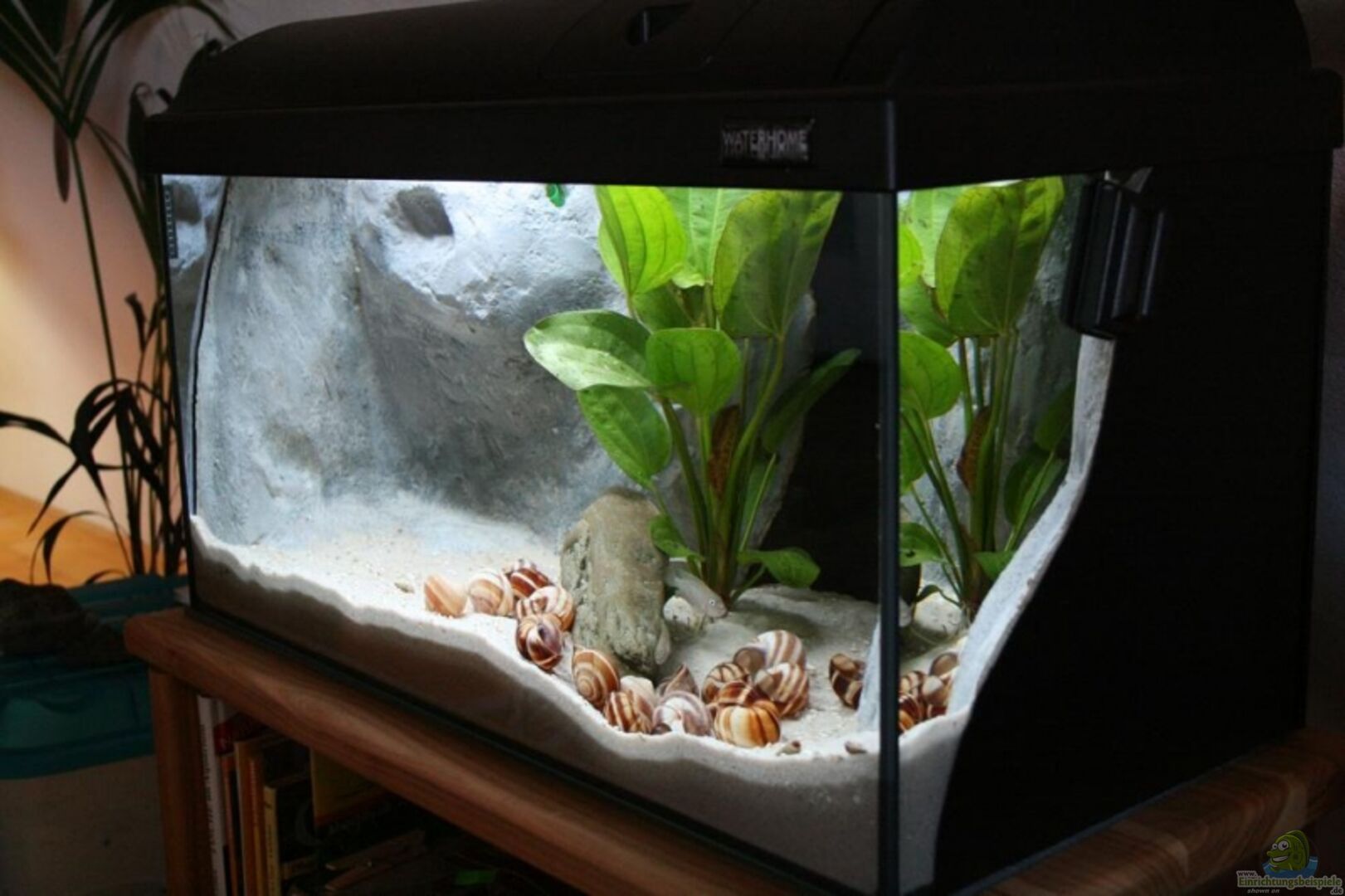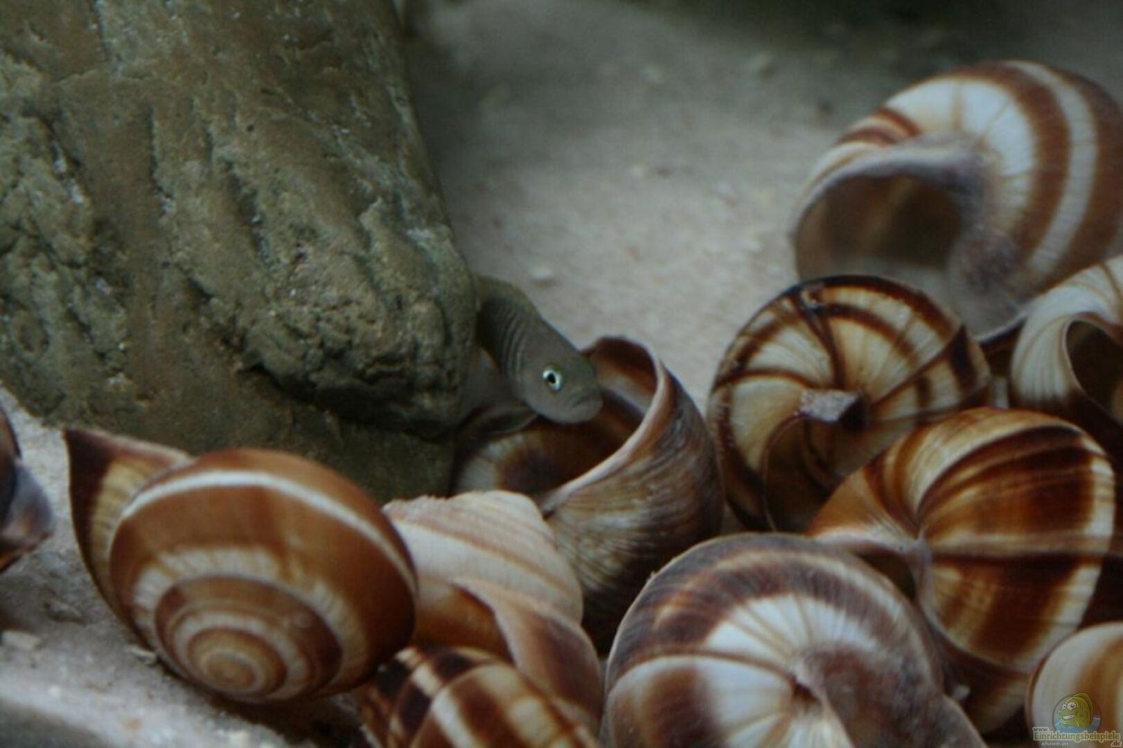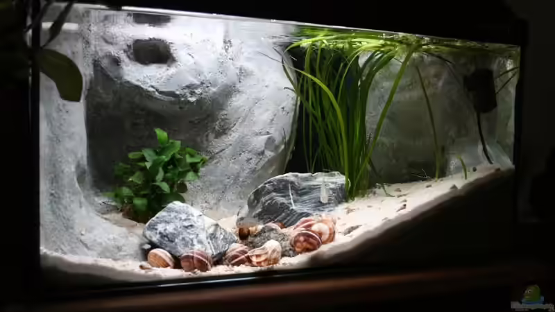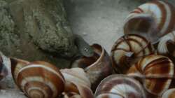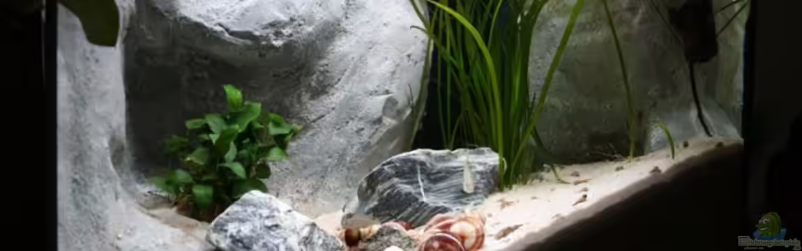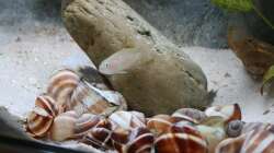 Als weiters Zubehör dienen in einem Schneckenbuba Becken natürlich Schneckenhäuser, in diesem Fall zwar nicht die der Neothauma Schnecken aber dafür die ebenwertigen Weinbergschneckenhäuser und zur abgrenzung des Reviers noch einige steine, teilweise komplett im sand vergraben, und die buddelleidenschaft der multis ein bisschen einzugrenzen