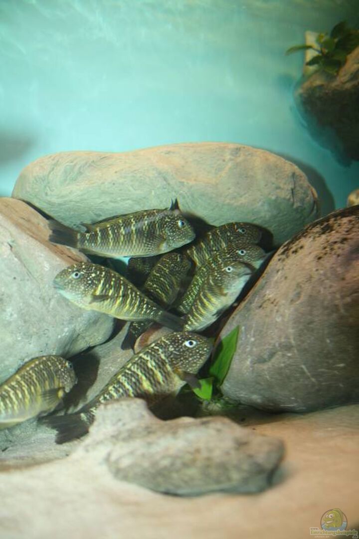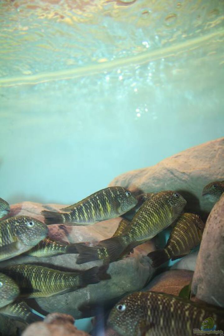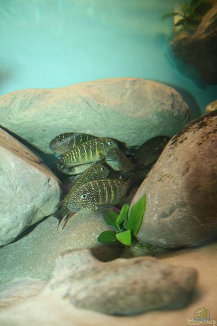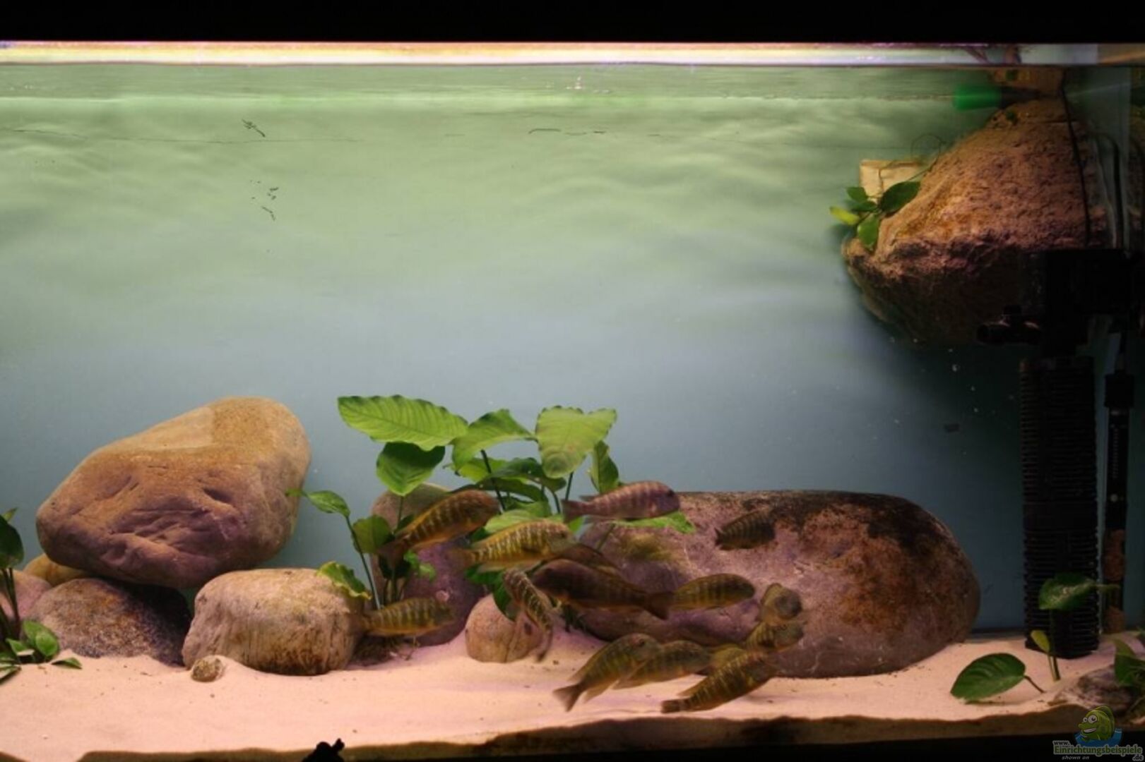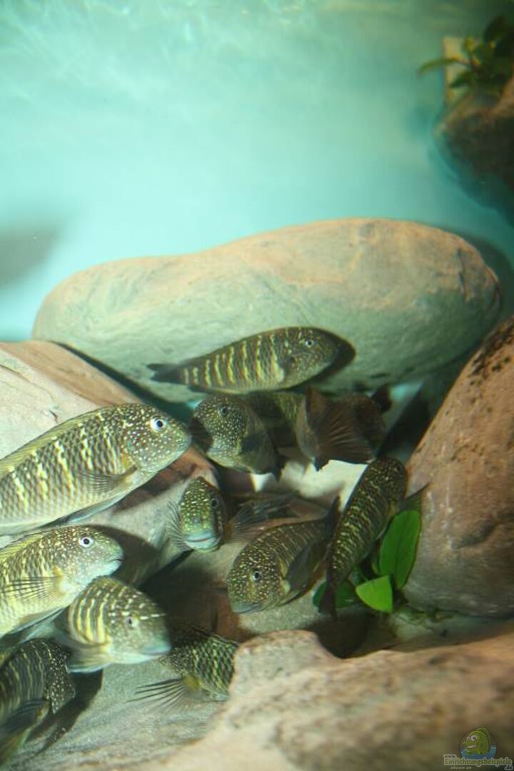 Ich habe mich dazu entschlossen viele Steine ins Becken zu geben, um somit viele Versteckmöglichkeiten zu schaffen. Mehr Steine, mehr Reviere. Becken mit wenig bis keine ´Deko´ hat sich bei Tropheus ebenso bewährt. Beide Varianten haben bestimmt seine Vor- und Nachteile.