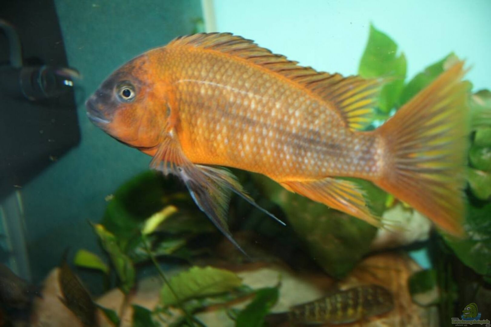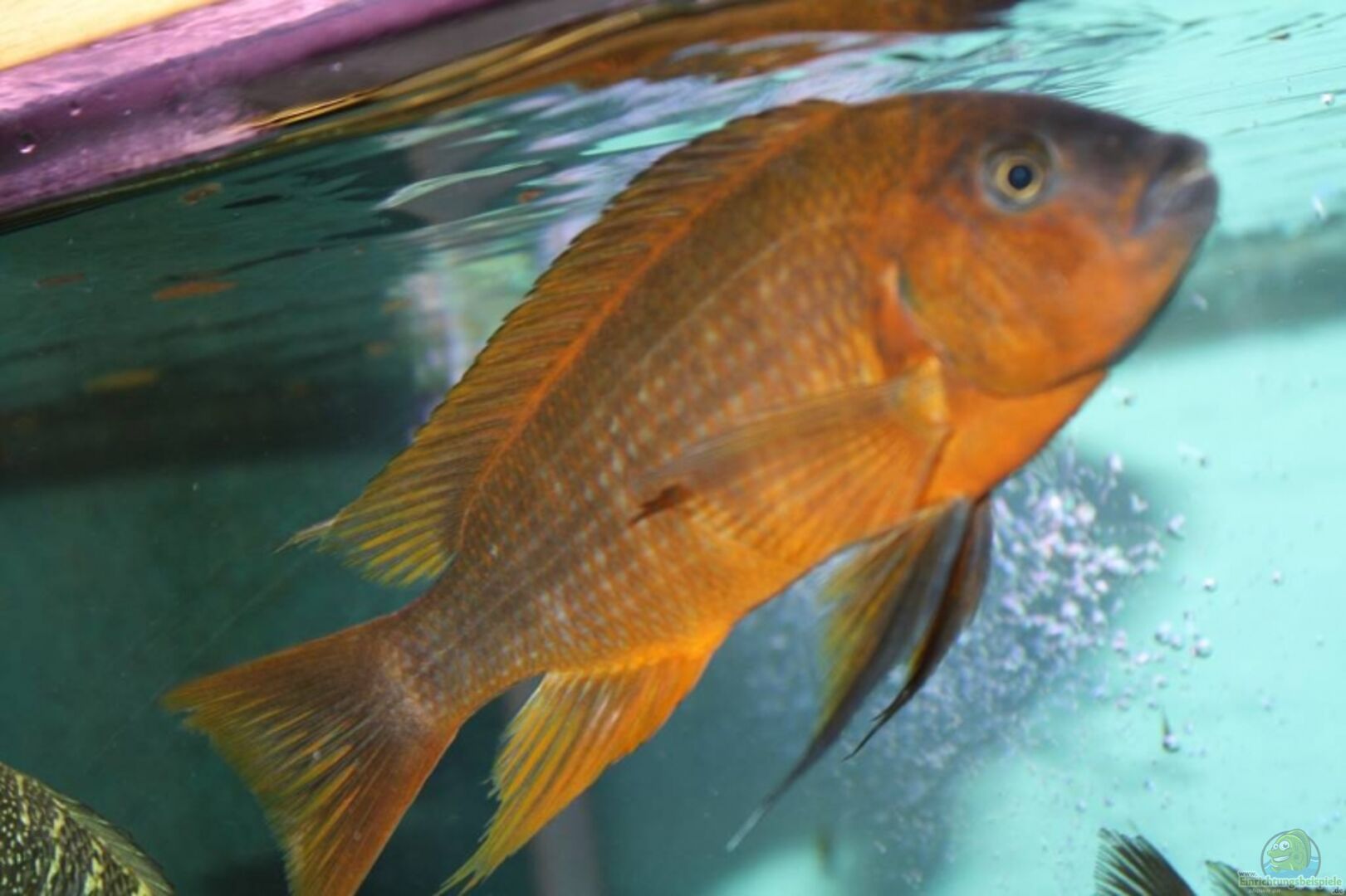 Ich habe einen Petrochromis gewählt weil ich davon ausgehe, dass dies aus meiner Sicht und die der Tropheus die beste Möglichkeit ist, diese doch ruppige Art und schweren Ansprüchen ´einfach´ gerecht zu werden. Auch hier gibt es viele Halter die erfolgreich gro??e Gruppen an Petrochromis halten. Leider ist es aber so, dass dort aus irgendwelchen Gründen auch immer, eine schnelle dezimierung der Gruppe immer präsent sein kann. Und wie man auf den Bilder erkennen kann steht der Petro (ohne Weiber) gut in Farbe. Einziges Manko, der Petro jagt gezielt, d.h ich konnte Beobachten (Auch bei reinen Petro-Becken), dass er sich gezielt einen schnappt und ihn jagt, selbst wenn dieser durch seine eigene Gruppe schwimmt. Tropheus sind blitzschnell und so oft kommt das auch nicht vor.Die Menge der Tropheus ist auch ein Vorteil, weil so die Aggressionen auf mehre Individuen verteilt wird.