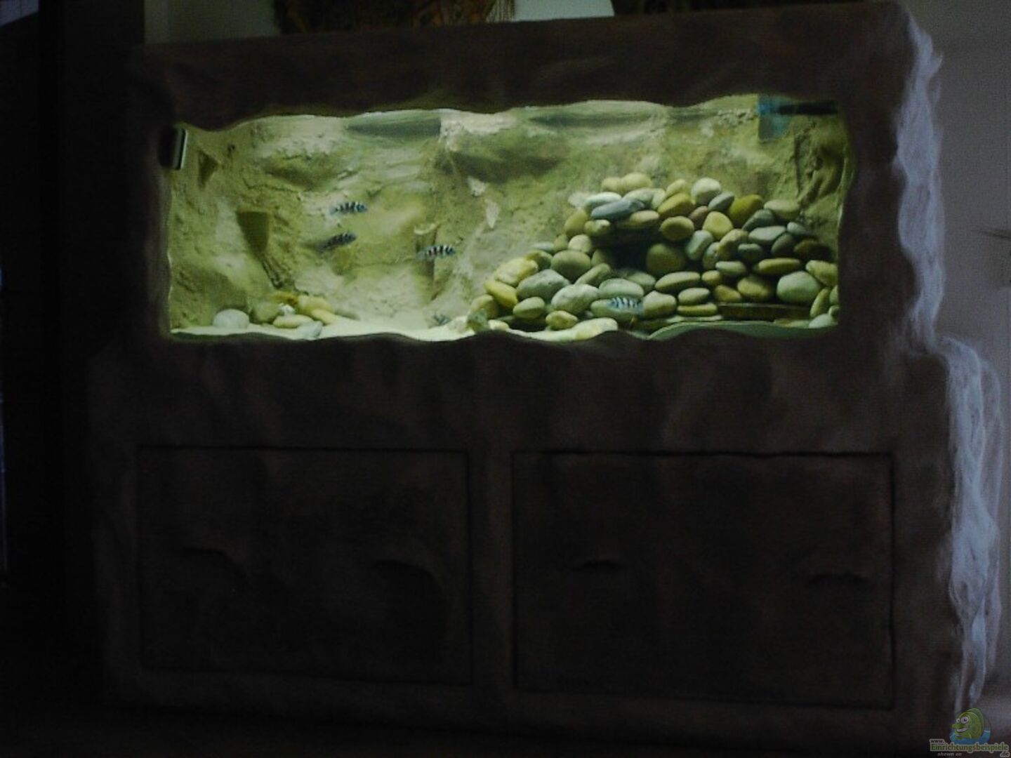 Wow! Das ist doch mal ein schöner Aquariumschrank. Gefällt mir sehr gut. Auch die Dekoration finde ich nicht schlecht.