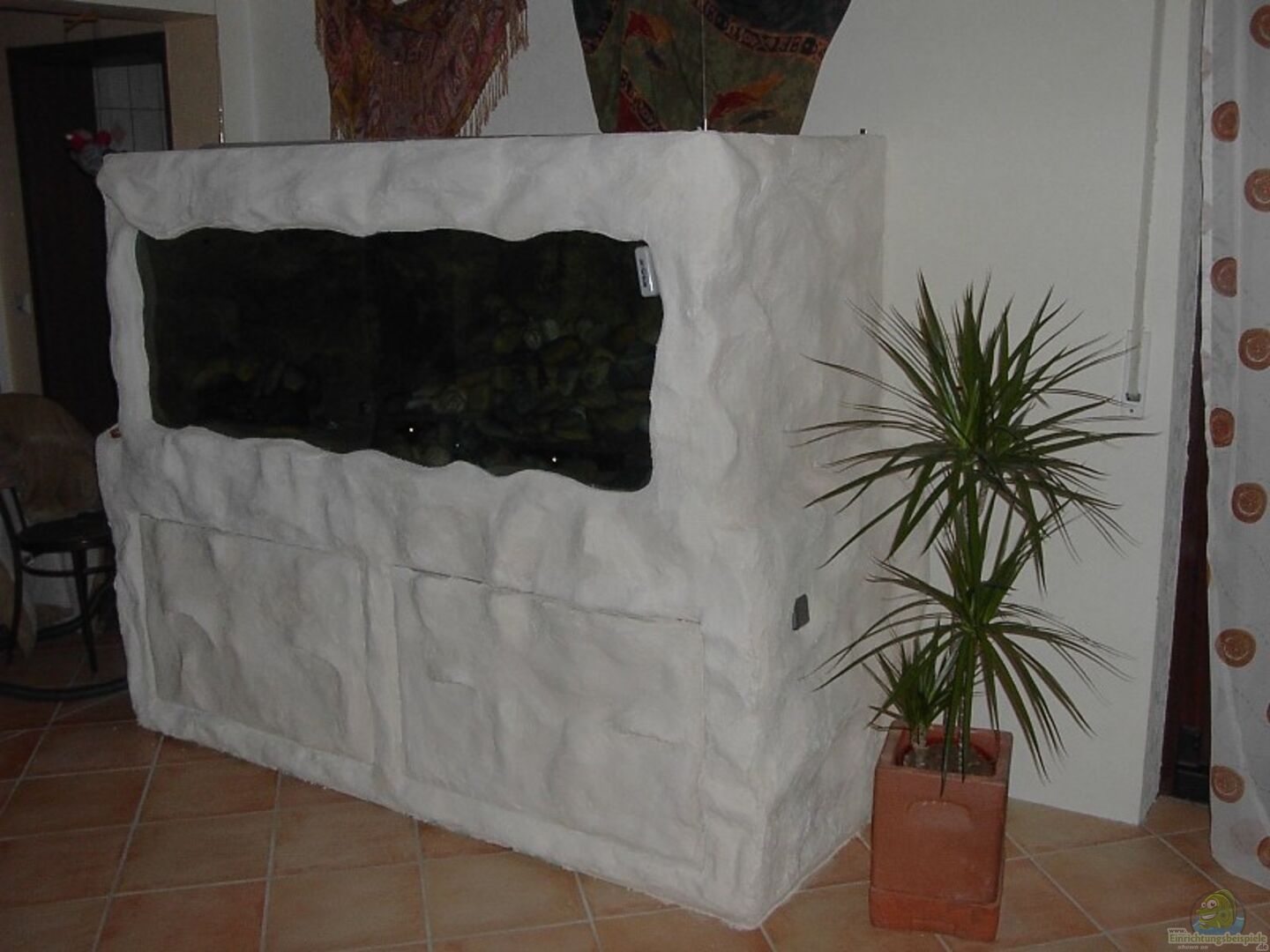 Die Rückwand finde ich nicht schlecht, Aquariumschrank ist auch Klasse, und das mit den Steinen naja die gefallen mir nicht so besonders.