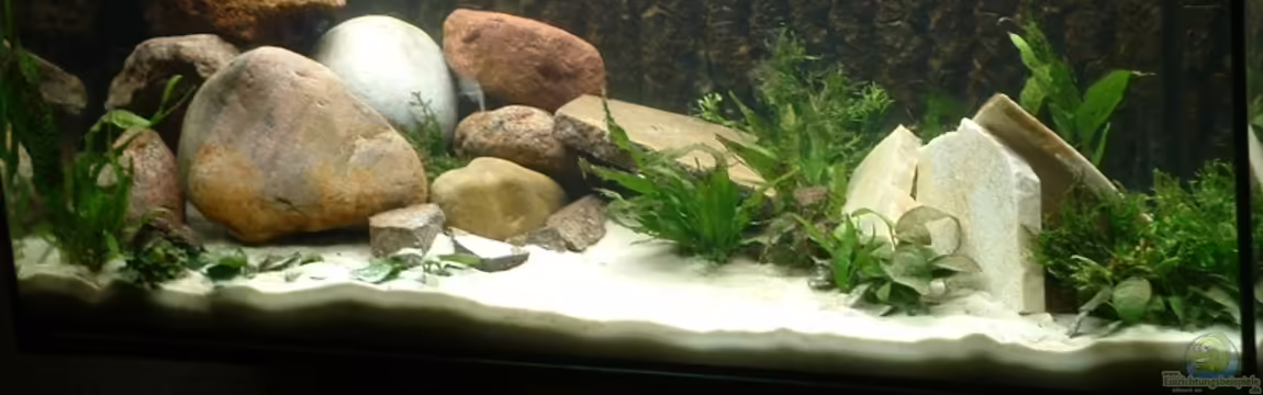 Sehr schönes Beispiel wie man aus einem kleineren Aquarium ein gro?es Schmuckstück macht. Hoffentlich fault es langfristig nicht im Quarzsand, da dieser so kompakt ist, das keinerlei Wasseraustausch erfolgen kann, zudem er sehr dick ins Aquarium eingebracht wurde. Die Kuckuckswelse werden mal recht gro?. Somit würde ich keine weiteren Fische mehr dazu vergesellschaften, auch da die Feenbuntbarsche Etagenaufzucht betreiben, und sie sich sicherlich vermehren werden.