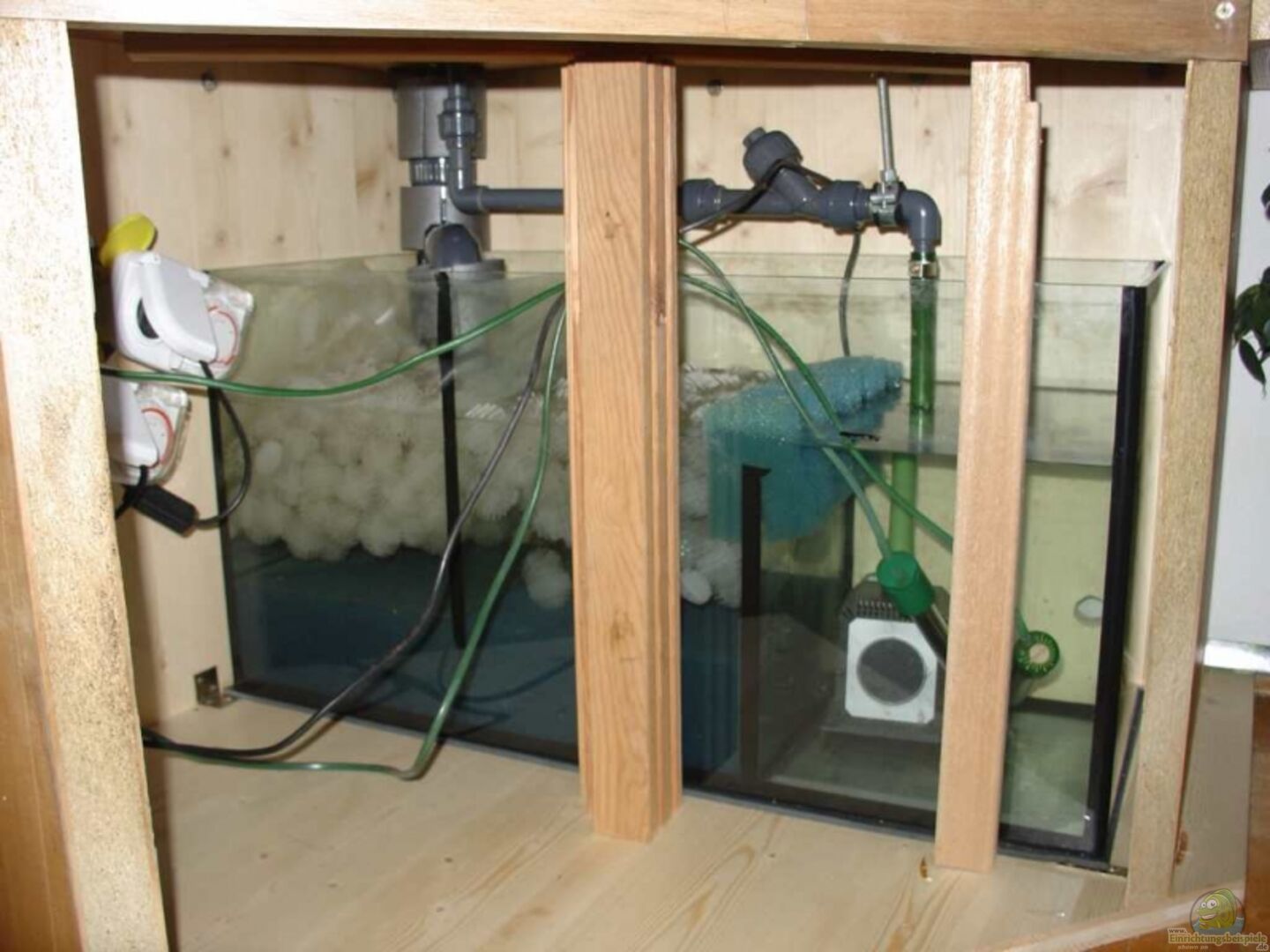 * Rieselturm mit Watte, Filterschwamm und Filterwürfeln